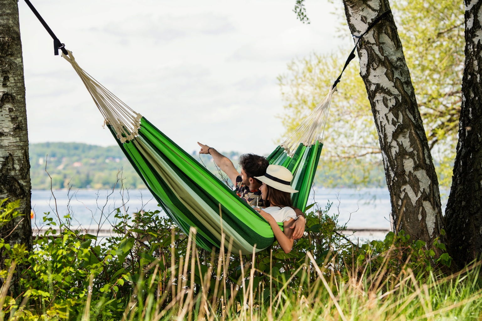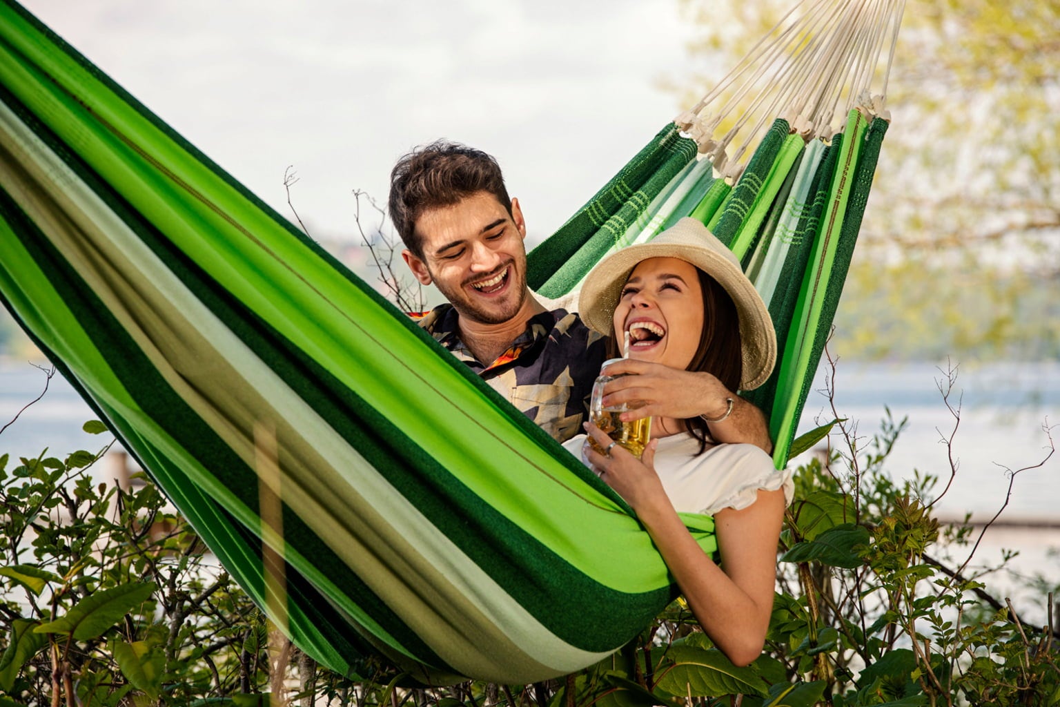 Are you dreaming of peace and relaxation, and that special holiday feeling? The XXL Paradiso hammock is not only beautiful but incredibly comfortable too. The firm, yet wonderfully soft and cosy fabric offers maximum comfort. Numerous suspension cords distribute your weight evenly for that wonderful feeling of almost floating on a cloud. The generous lying area of 175 cm x 200 cm and a load capacity of up to 200 kg is enough to hold up to 3 people comfortably. The perfect place to relax for couples or a group of three.