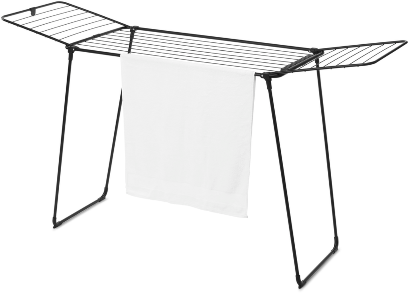 The HangOn LaundryRack with 22 metres of drying space is the ideal helper. It offers enough space for large and small items of laundry, from shirts to towels, and the integrated holders also make it easy to hang socks and underwear. After drying, the rack can be folded flat to save space and is easy to move thanks to the transport lock.