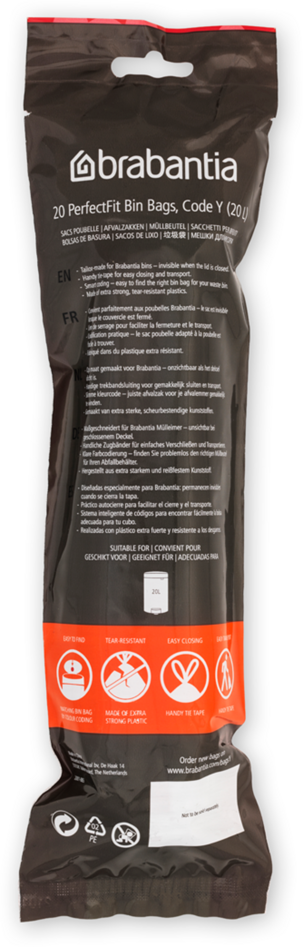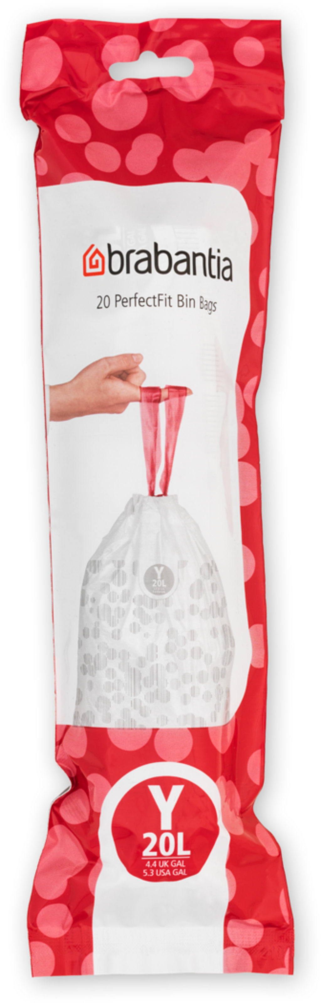 Brabantia PerfectFit Bin Liners for the Bo Touch Bin - Roll Pack, 20L (Y) - 20 Pieces