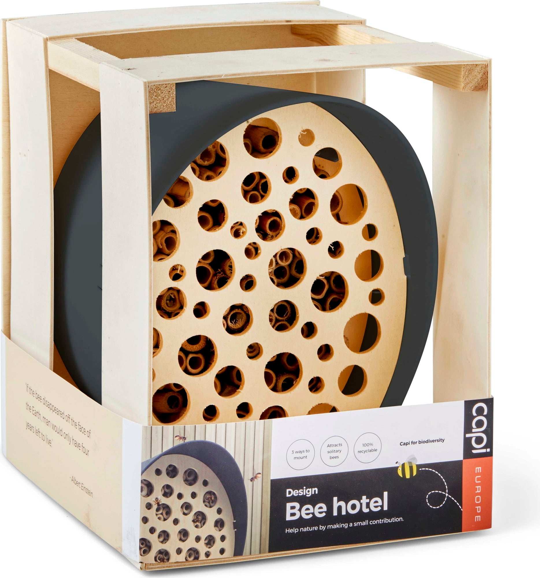 - This bee hotel makes for a stylish decoration in your garden, and also makes an important contribution to maintaining biodiversity by providing safe housing for beneficial bees.