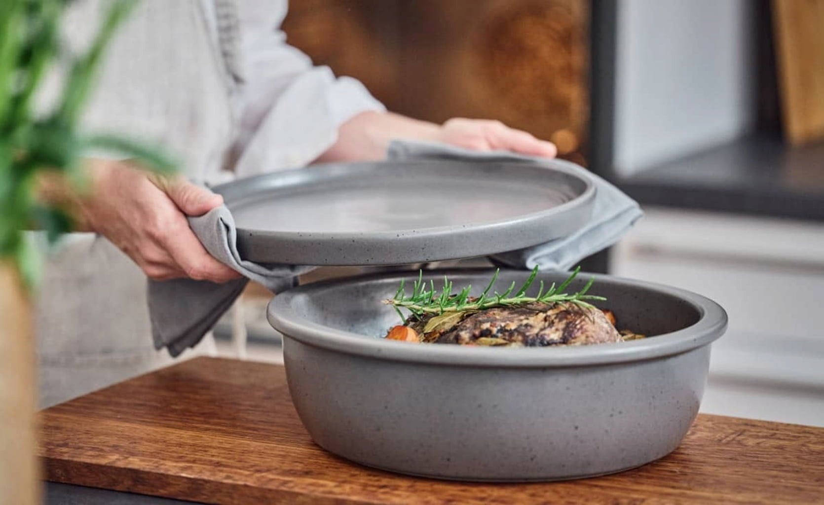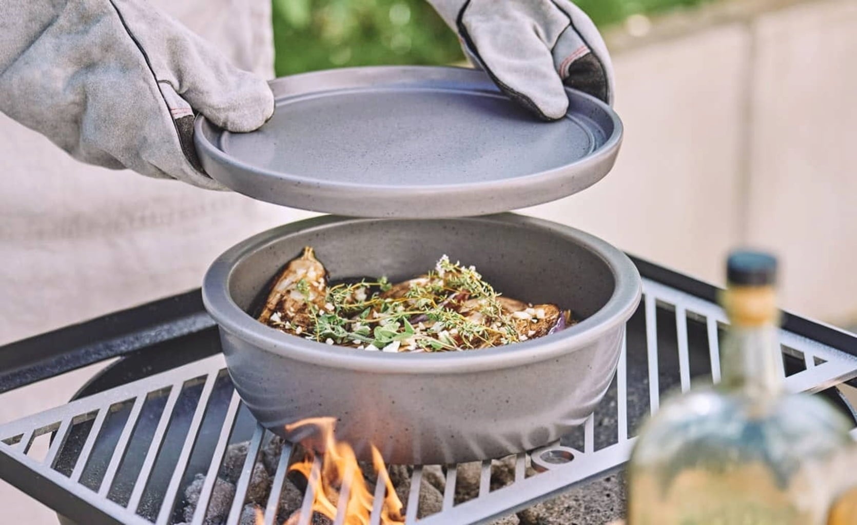 Thanks to the outstanding cooking properties of the fireproof Ceraflam®-coated ceramic griddle, every dish cooked in it turns out perfectly - whether it's fish, shrimps, meat or vegetables. The innovative, fireproof cookware is designed to go from the grill or oven to the table - perfect for cooking and serving too! The griddle can be placed directly over an open flame and does not need to be soaked first. The ceramic takes only a few minutes to heat up. Thanks to its special glaze, you can even cook without oil, supporting health-conscious meals while still achieving intense roasted aromas.
