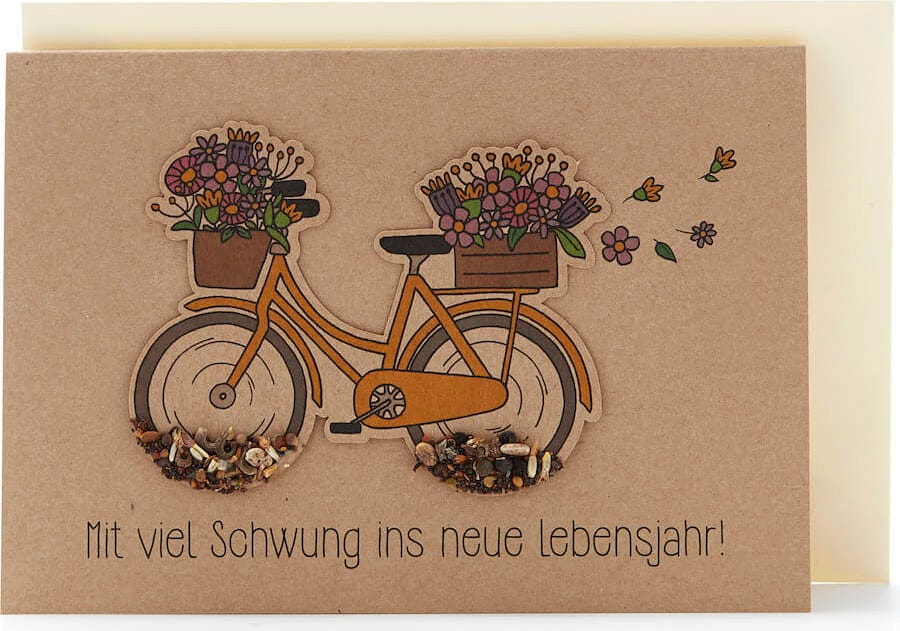 Die Stadtgärtner Greeting Card with Seed Plug "Mit Schwung ins neue Lebensjahr"