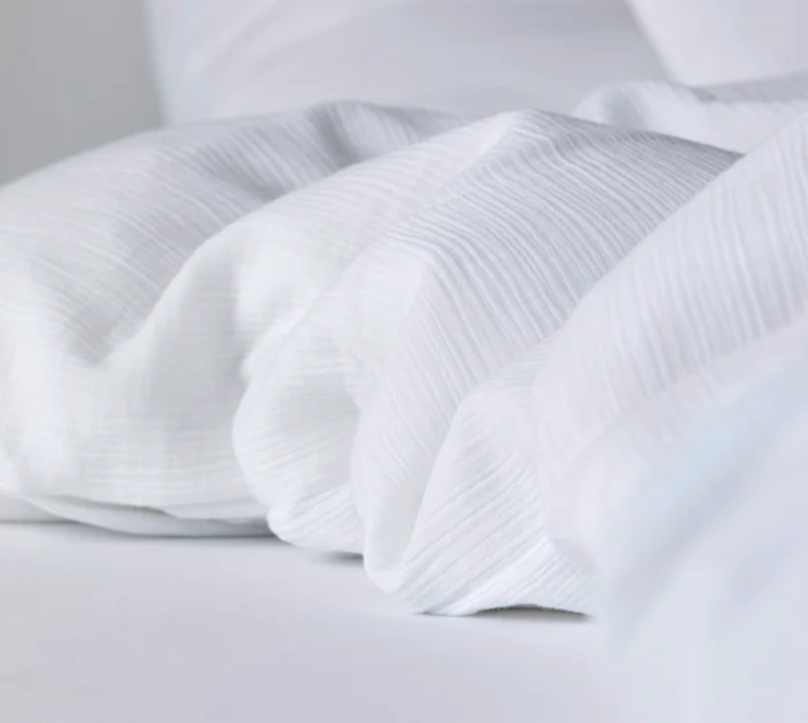 The Smooth bed linen line in the shade white brings a relaxed, modern look to the bedroom. The light crinkled effect of the muslin fabric ensures casual folds and a soft, pleasant feel against the skin. Made from 100% cotton, the Smooth series is particularly breathable, easy to care for and can be used all year round. A practical zip makes it easy to cover blanket inserts.
