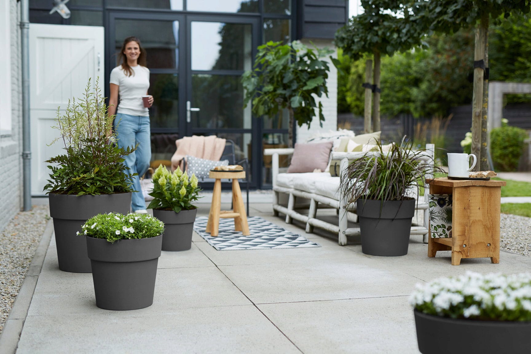 - This pretty planter impresses with a simple and modern design and a coarse structure which gives it an extravagant touch. Add an elegant accent to your garden, terrace or balcony!