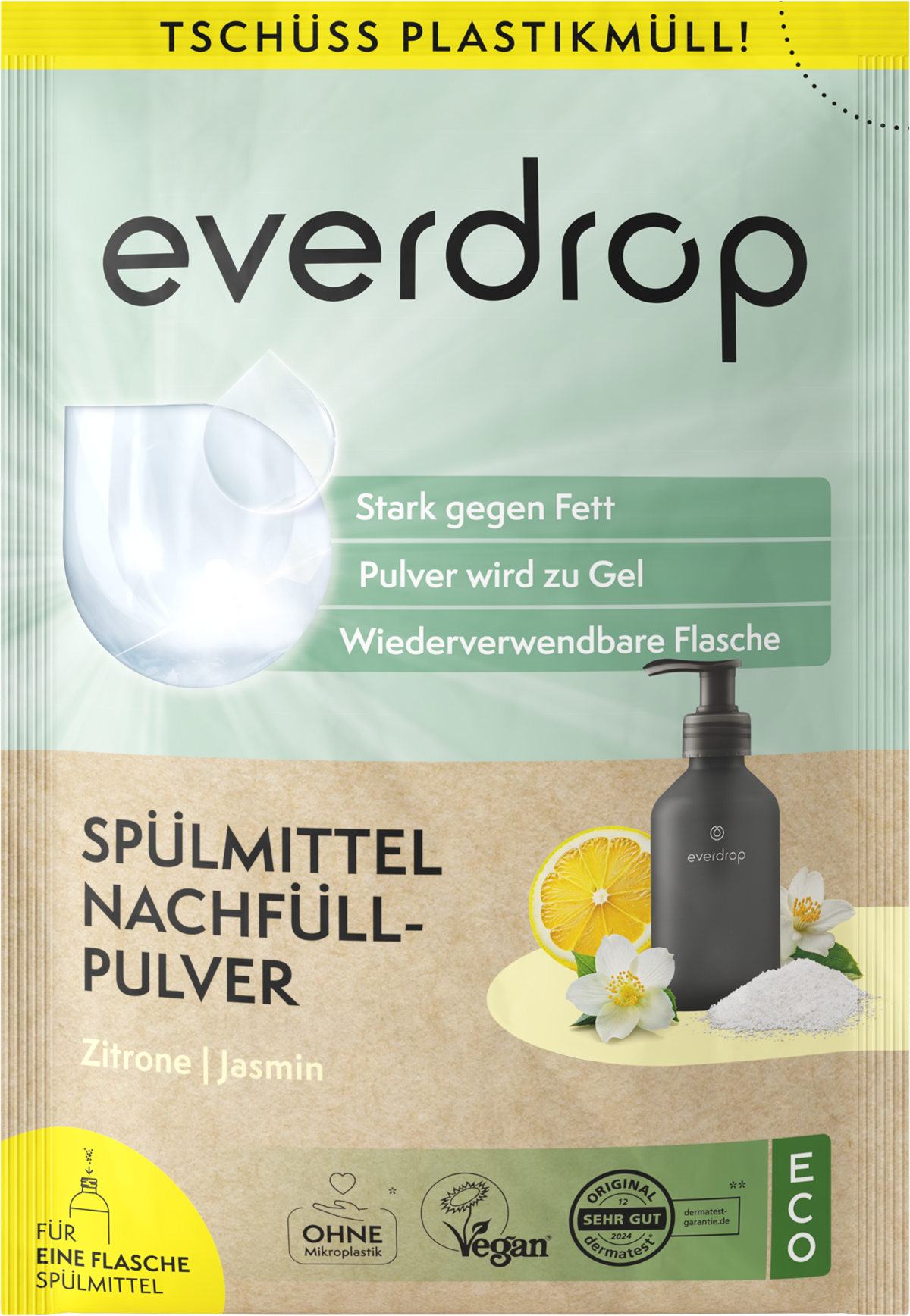 Wash your dishes without single-use plastics or microplastics! Just add water to transform the powder into a practical washing-up liquid for hand-washing your dishes. Enjoy sparkling clean dishes in no time!