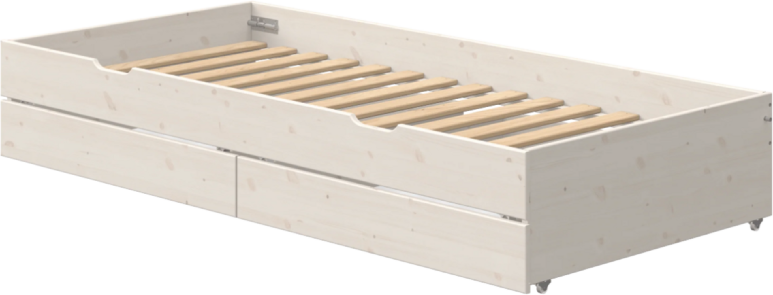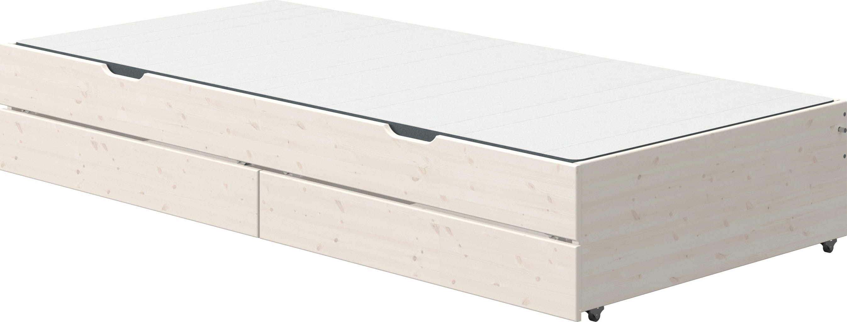 Pull-out bed with 2 drawers - fits exactly under the CLASSIC bed 90x190 cm and offers both a sleeping accommodation for overnight guests and storage space.