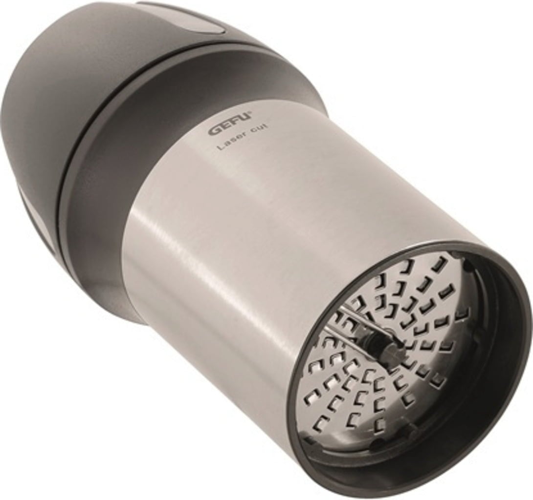 The contoured handle ensures safe and secure use, while the included aromatic cap guarantees your grated ingredients remain fresh and flavourful. A particularly clever feature: the grating disc you are not currently using can be stored securely inside the cap. Furthermore, the integrated scraper ensures you utilise every last piece of the ingredient. Crafted from high-grade stainless steel and plastic, the PARMIGIANO is, of course, entirely dishwasher safe.