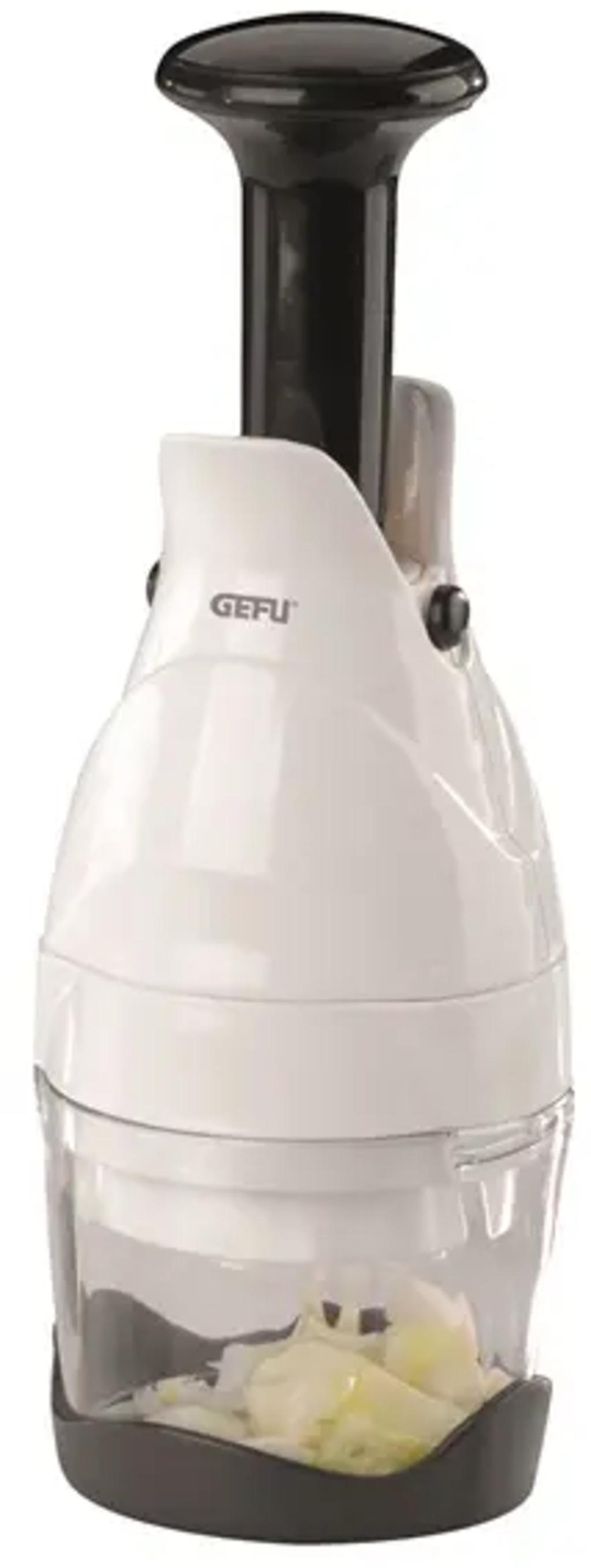 Forget the dreaded, tear-filled chore of chopping onions! The GEFU Vegetable and Herb Chopper makes chopping onions quick, effortless and tear-free! Also suitable for chopping garlic, fresh parsley, or other herbs - finely chopped in a flash by simply pushing the lever. And thanks to its non-slip base, the chopper won't move while you're using it!