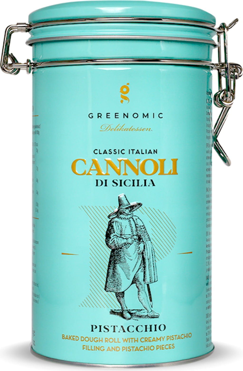 Cannoli are a classic Sicilian pastry with a creamy filling. They are ideal with coffee or as a delicious snack at any time. The beautiful tin comes with a lid that can be tightly closed thanks to the clip thereby preserving the freshness and flavour of the cannoli.