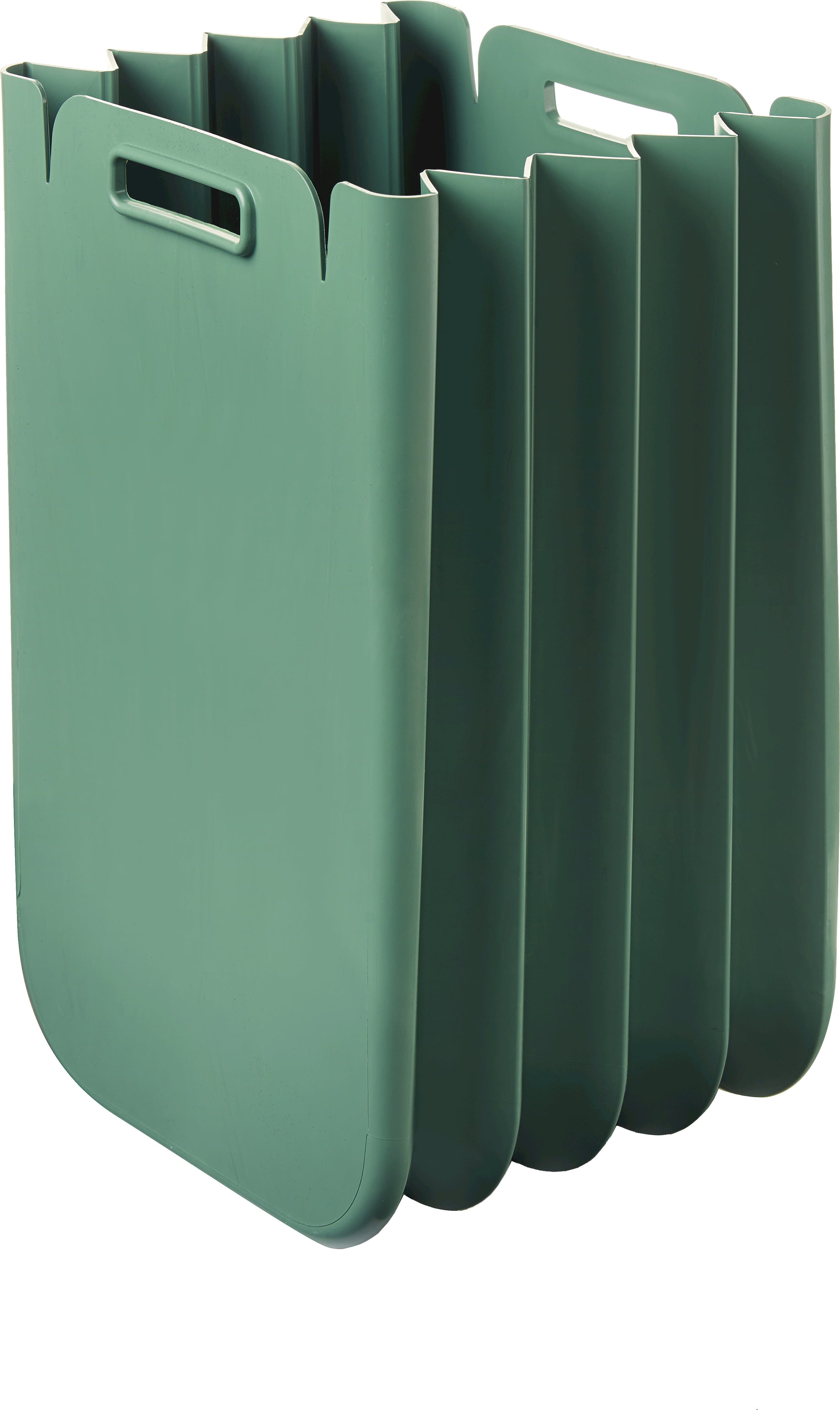 EcoPackly was designed as an innovative and compact waste bin but is a multifunctional household accessory. It is versatile in use - you can use it to collect paper, plastic, glass and metal, separate dirty laundry or transport items. The specially shaped rim on which to hang bin liners underscores its primary function as a waste bin. Plus, it comes with a handle which makes it easy to carry. The collapsible eco-friendly design made of recyclable plastic takes up 80% less space when folded.