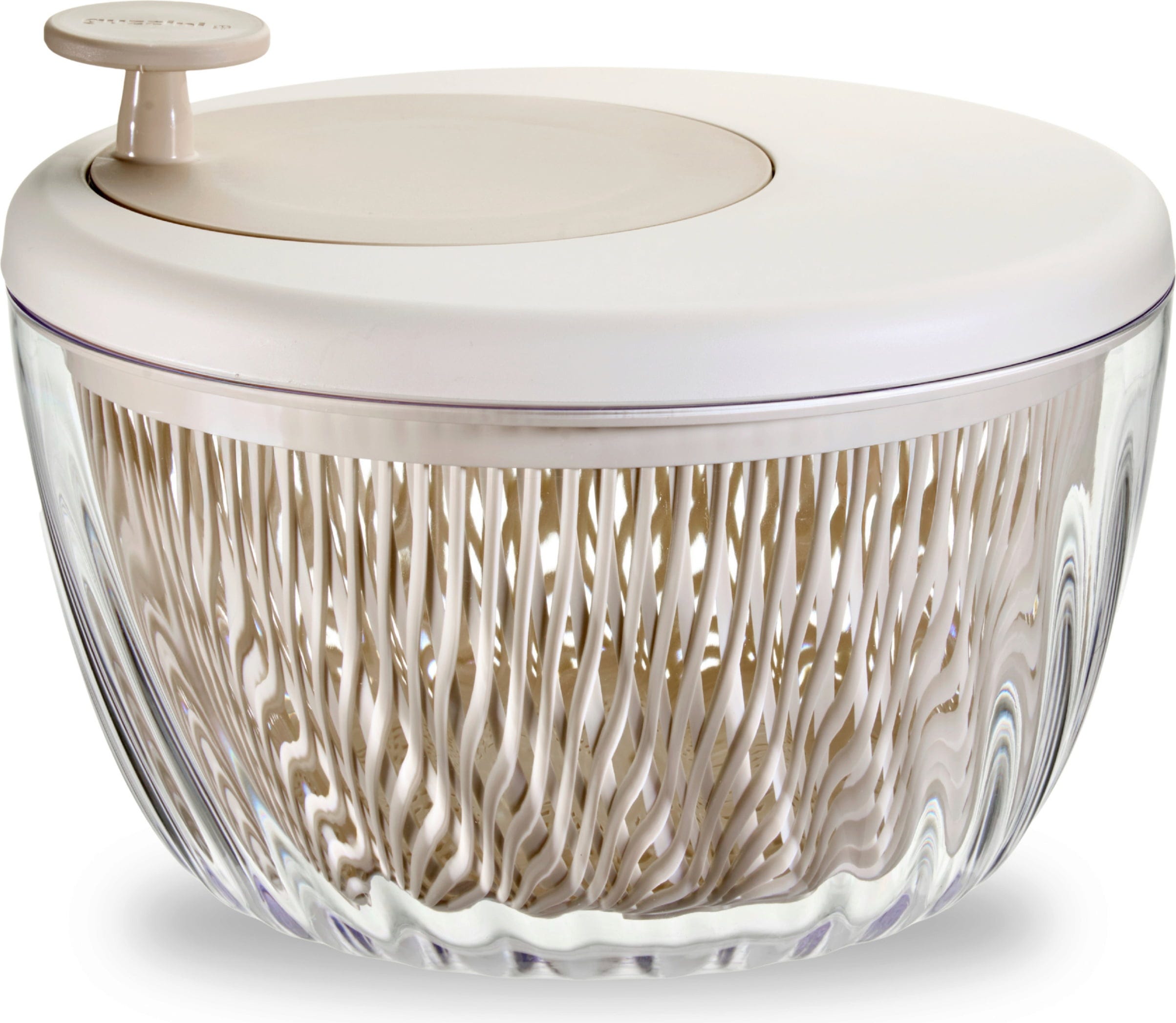 Spin, store, defrost and serve! This beautiful salad spinner set made of high-quality plastic is a multi-purpose accessory that does far more than spin salads dry. Thanks to its elegant shape, the transparent bowl is also an appetising way to serve salad at the table. It comes with a lid that keeps salads fresh for longer in the fridge.