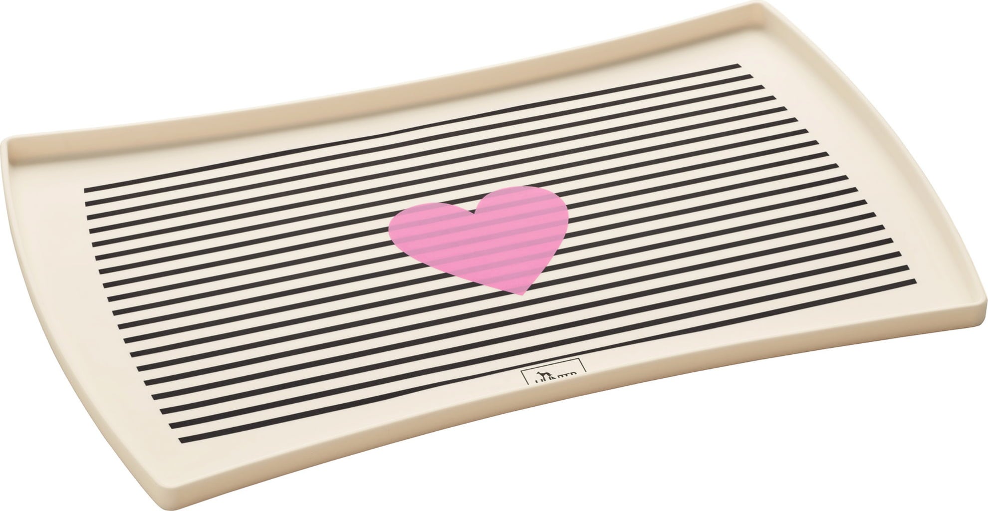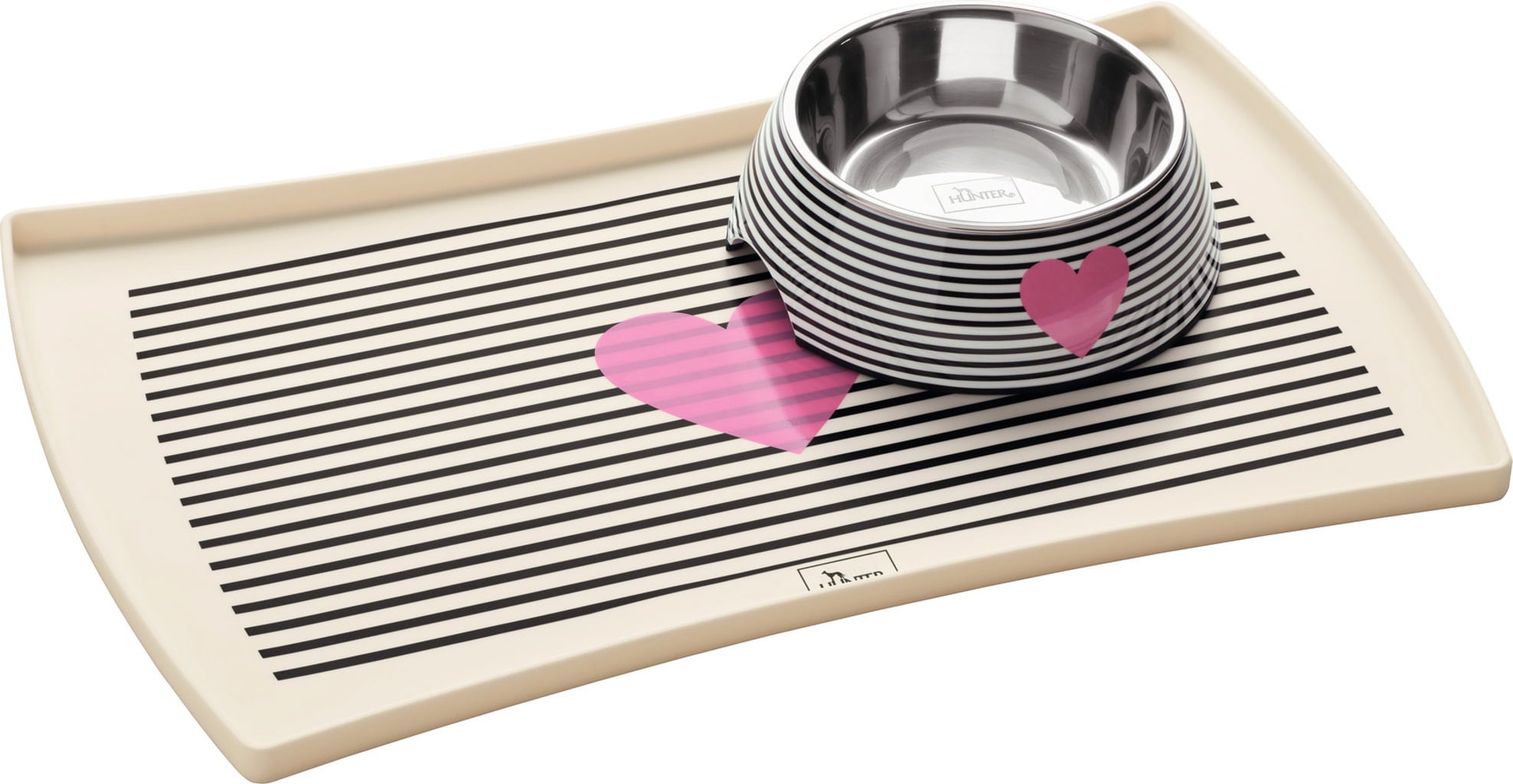The easy-care Biri bowl base with a striped heart pattern not only keeps your furry friend's feeding area dry and clean but also protects the floor underneath. Made from flexible, food-safe silicone, the base is dishwasher-safe and therefore very easy to clean.