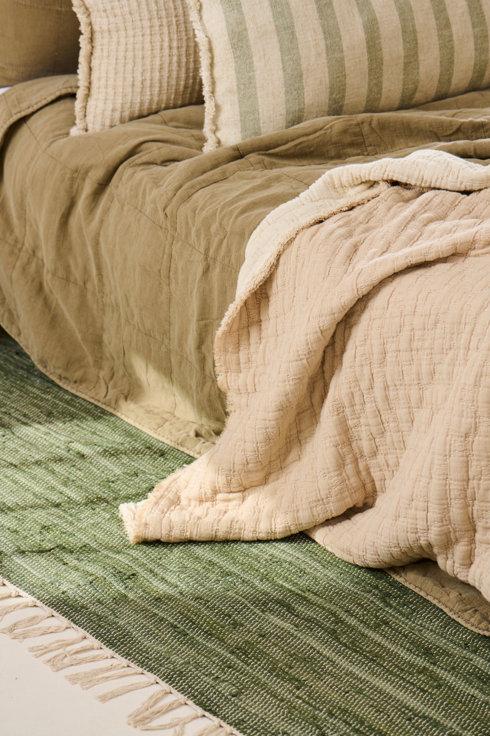 IB Laursen Bedspread with Chequered Stitching, Nature / Offwhite