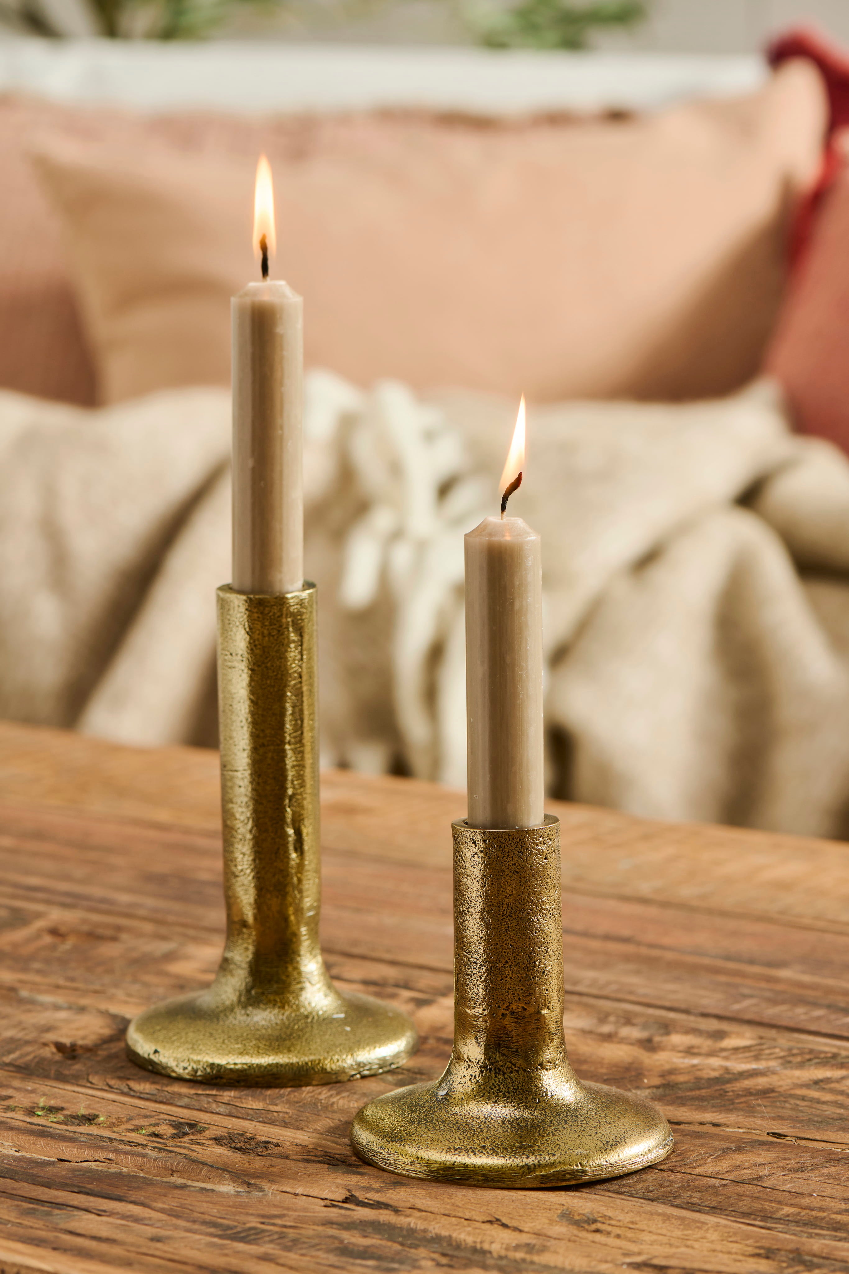 This candlestick creates a pleasantly warm ambience in your home with its charming, rustic design.