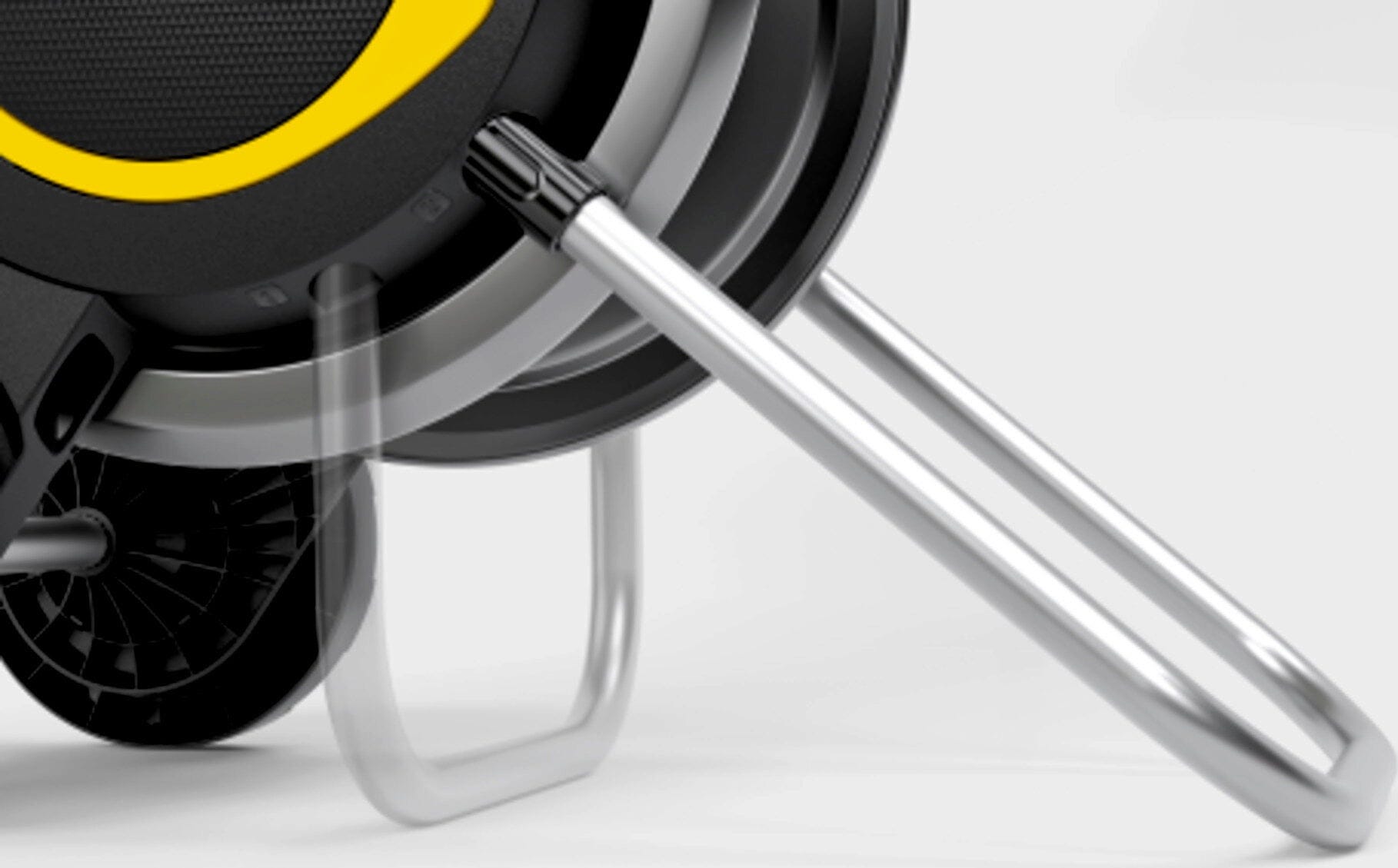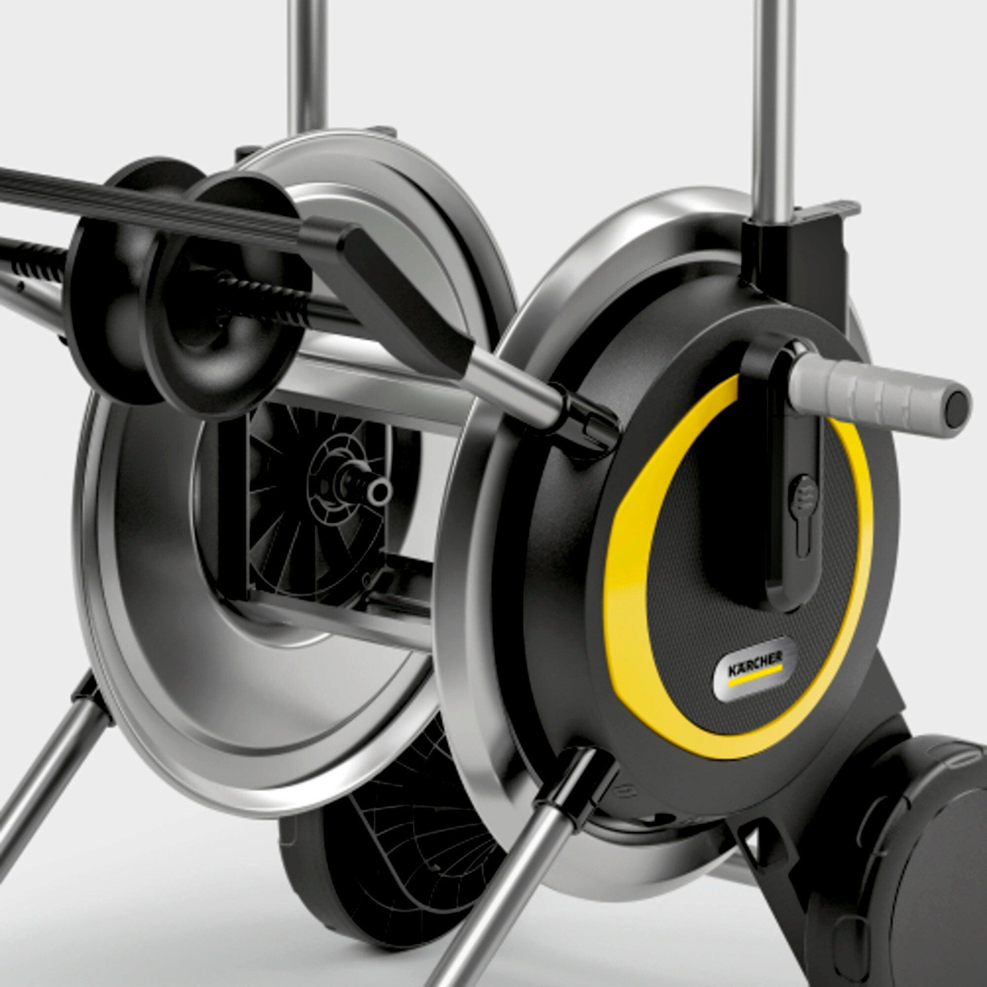 This hose reel offers a structured hose storage solution that simplifies daily handling and use. Featuring a sturdy metal hose drum, the construction is designed for regular use and is a reliable way to wind up the hose neatly after watering. The extra-wide base increases stability during use, while the integrated hose guide ensures the garden hose is rewound evenly, keeping it neatly stored on the drum without any kinks.