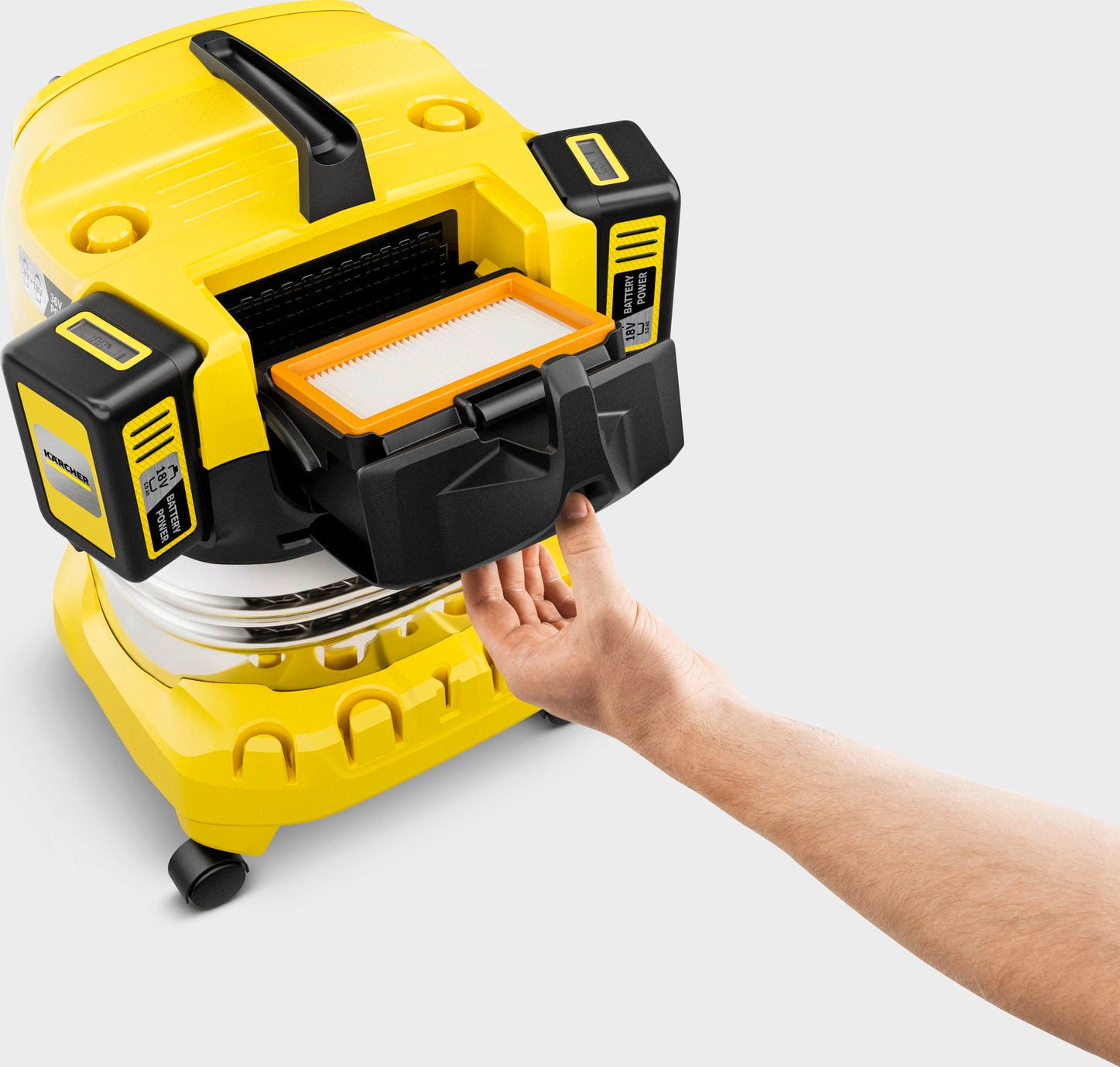 The Kärcher WD 4-18 S Dual Battery Set is the ultimate heavy-duty solution for environments where power sockets are out of reach or trailing cables are a safety hazard. Powered by a twin-battery 36V motor system, it delivers 100W of suction power to tackle the toughest jobs. Its robust 20-litre stainless steel container provides ample capacity for everything from fine dust and coarse rubble to large liquid spills.