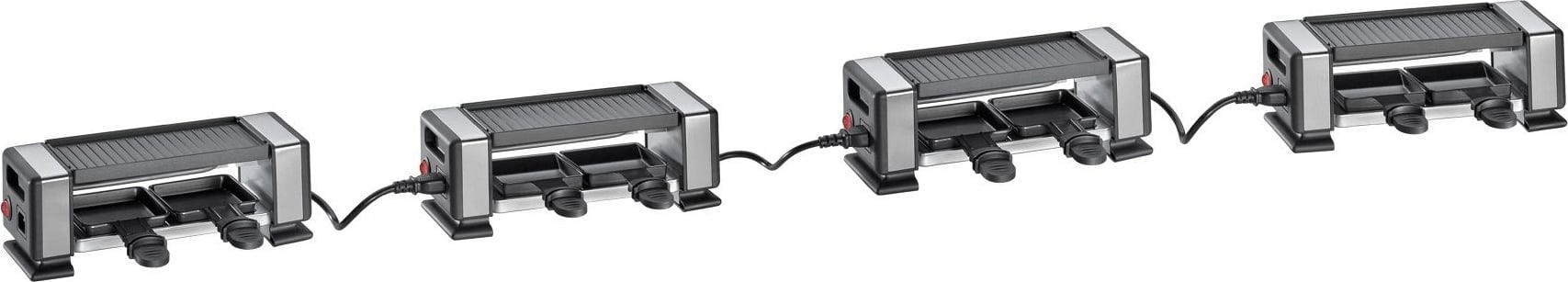This high-quality raclette has a space-saving design for 2 people and invites you to enjoy a cosy evening at any time.