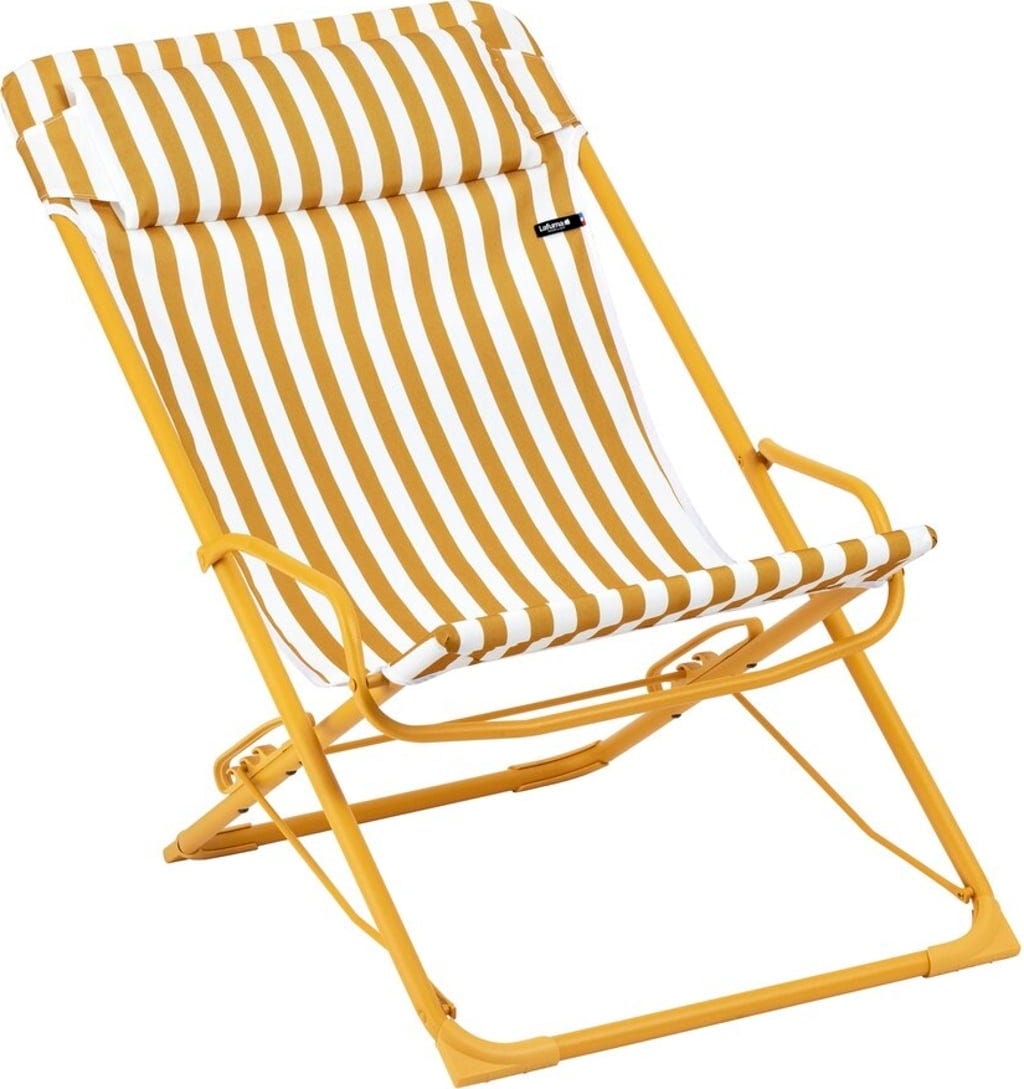 Whether you prefer to sit upright while socialising, relax while browsing, or fully stretch out for a short nap, the secure locking system with a practical guide bar allows smooth adjustment between three comfortable positions. The high-quality Airlon cover in a maritime style adds an elegant touch to your balcony or garden. The armchair can also be folded flat in seconds and stored easily, even in small spaces.