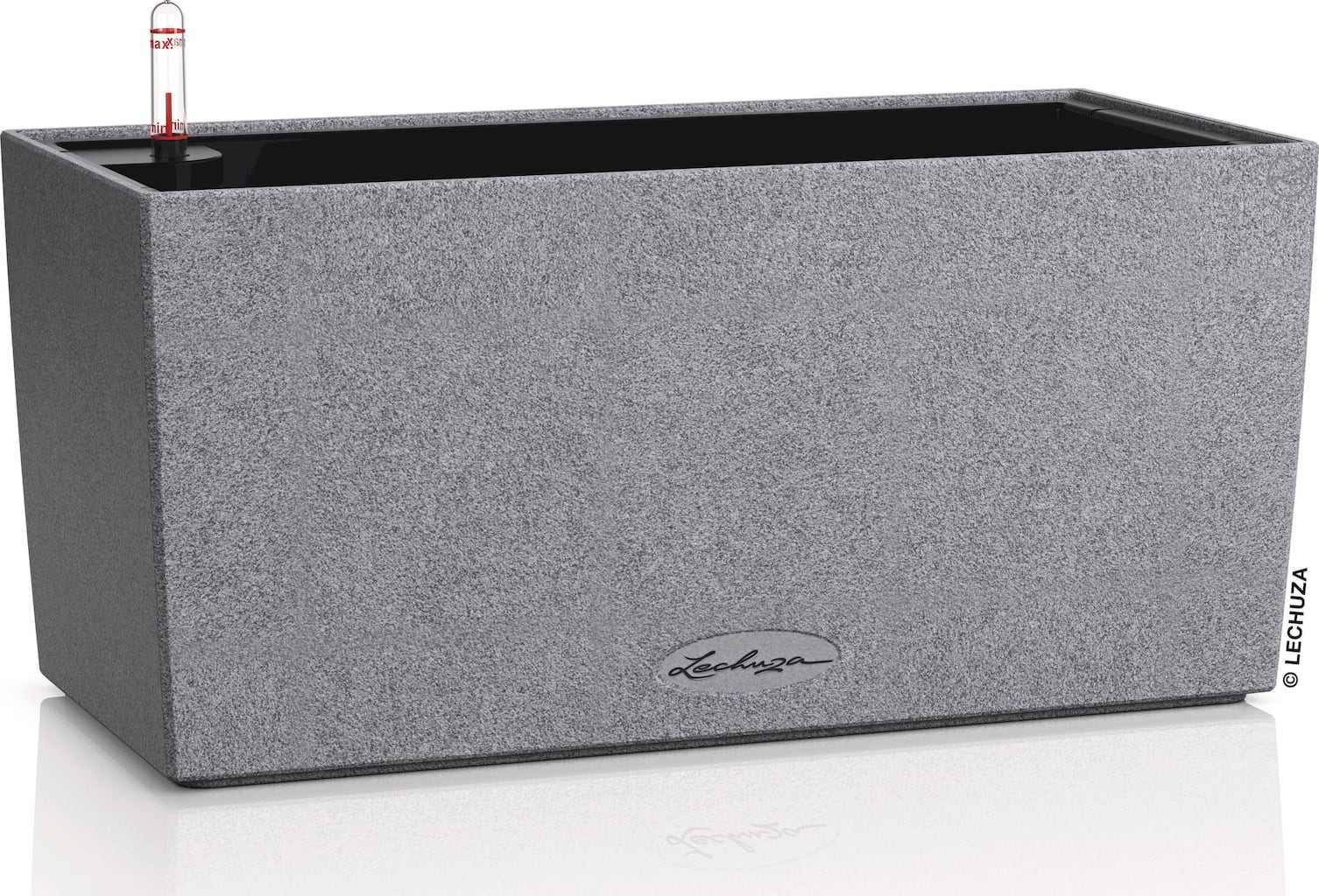The minimalist "Balconera Stone" planter from Lechuza skilfully highlights your balcony plants with its appealing surface texture. Plus, it includes practical features which make plant care easier. Whether placed free-standing or attached to the balcony railing with the separately available bracket - the planter box made of UV-resistant polypropylene is always a stylish eye-catcher.