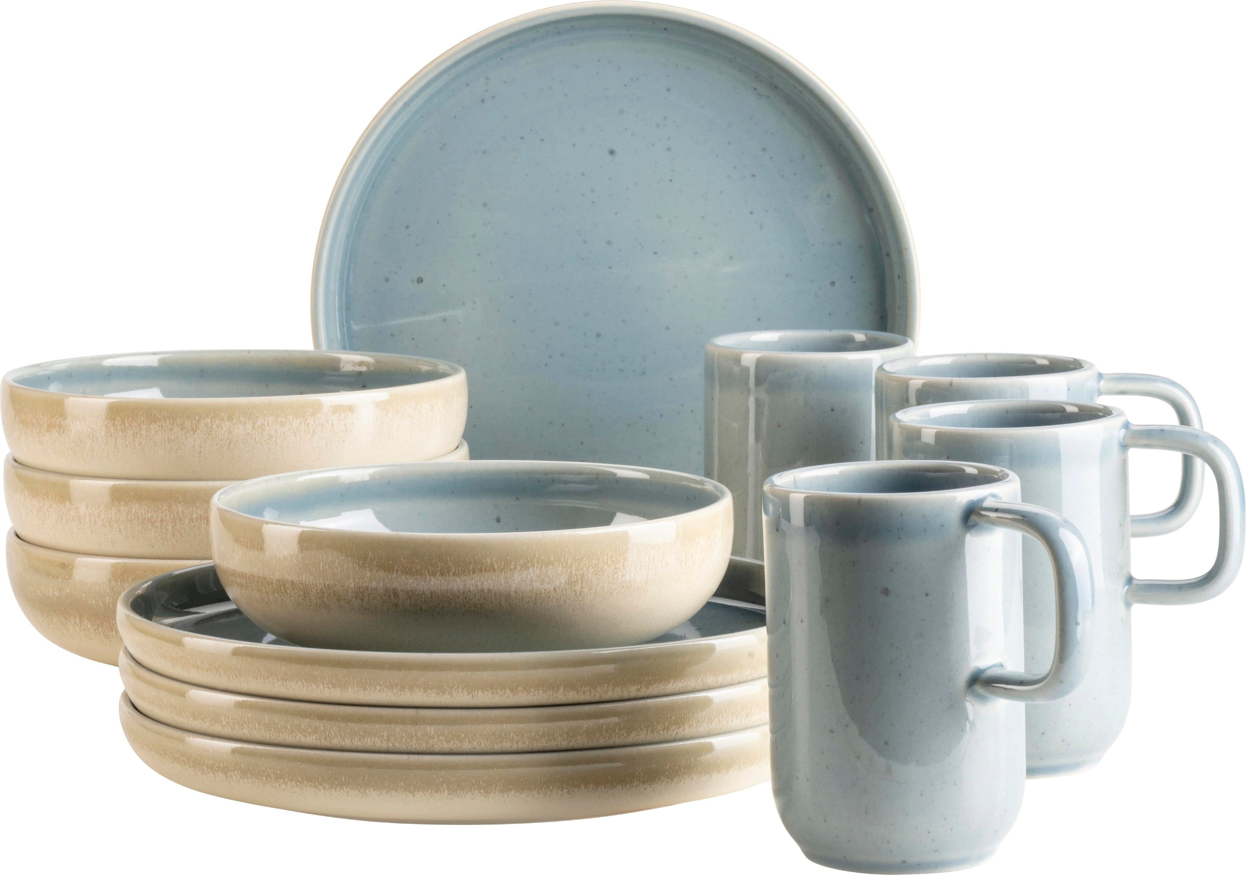 Bring summery pastel colors and modern design from Portugal directly to your breakfast table with this twelve-piece set! Crafted from high-quality stoneware, each piece features a visual reactive glaze that transforms your dinnerware into a truly unique item with a vibrant play of colors.