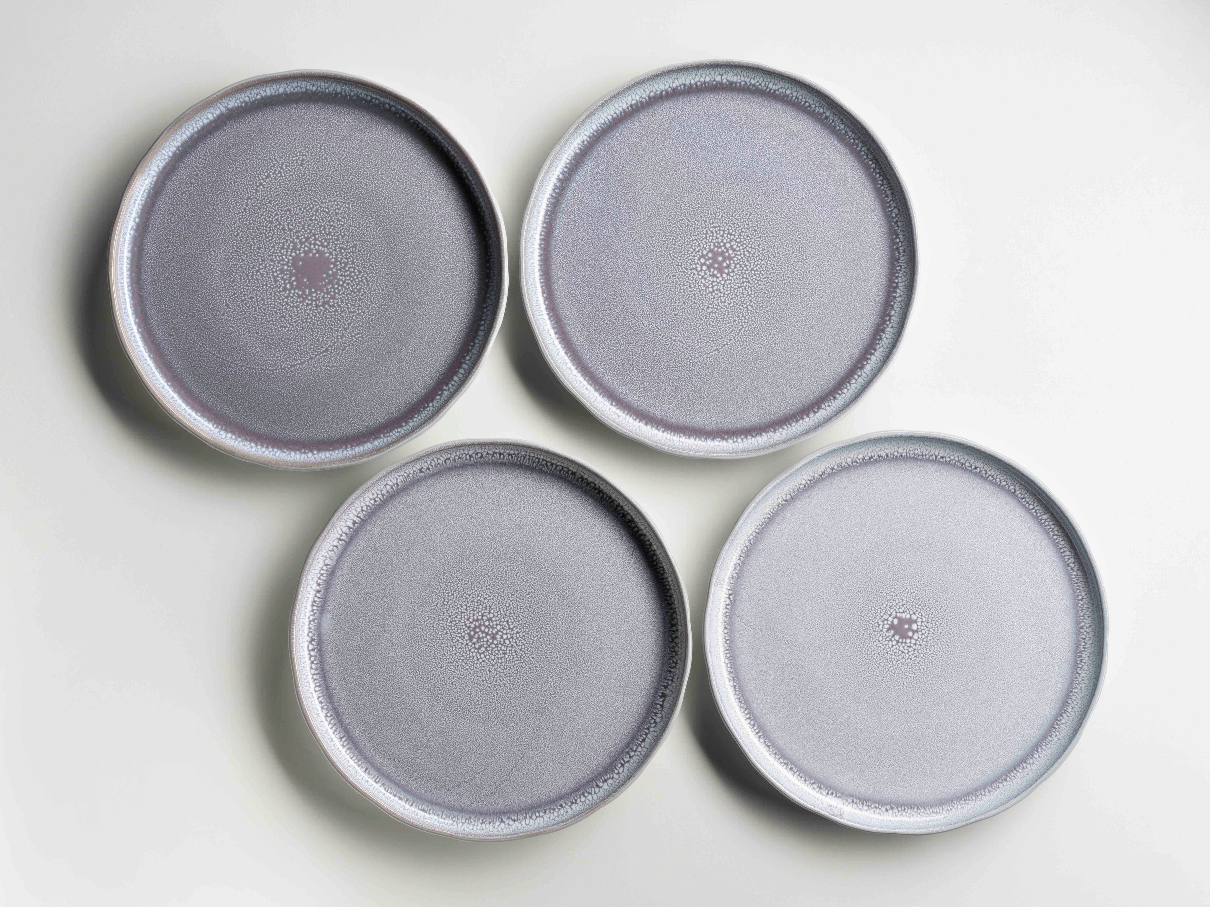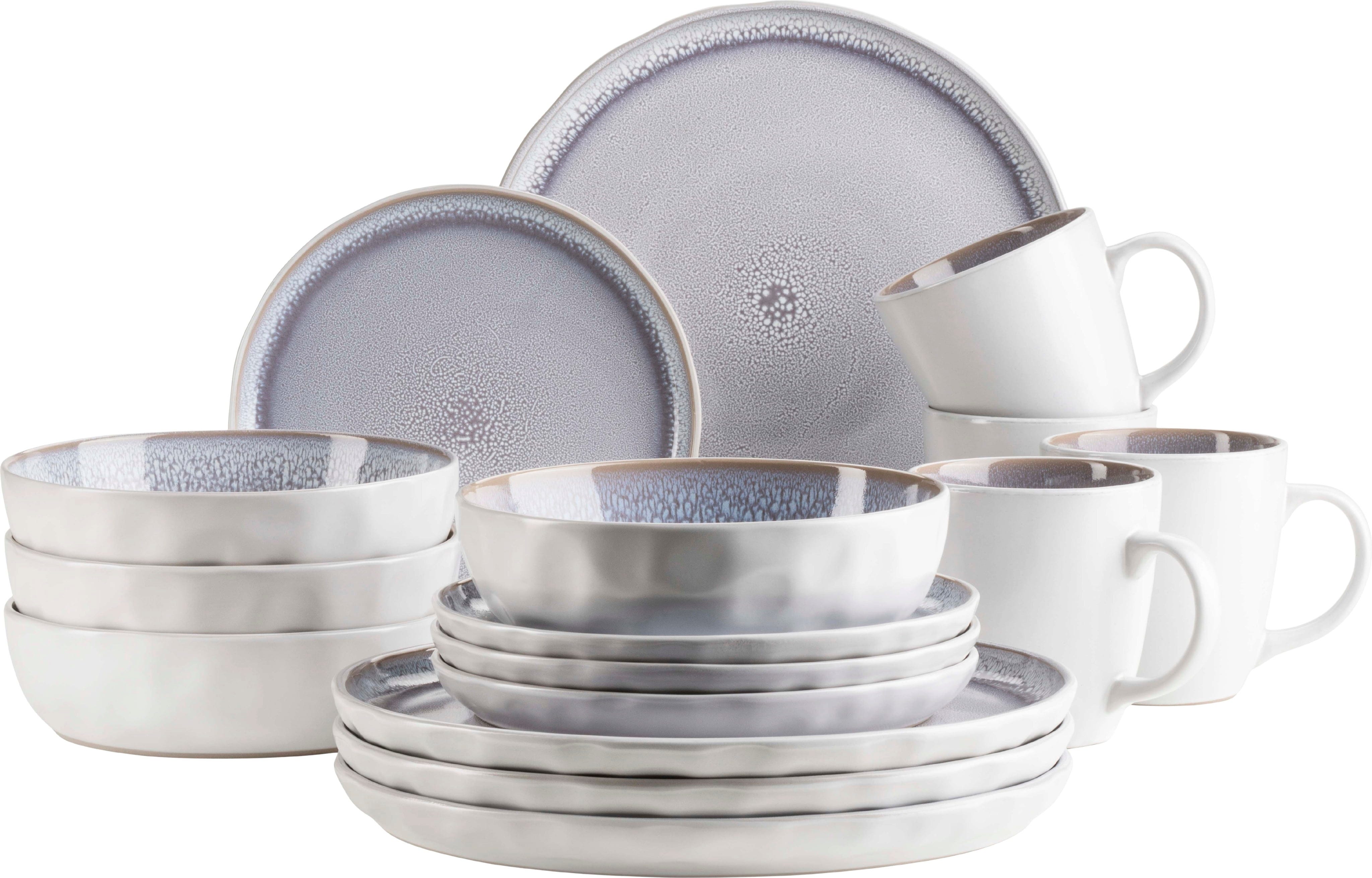 Give your dining room a harmonious and modern flair with this 16-piece dinner set from the Elea series, which impresses with its unique vintage look. Each piece made of high-quality stoneware is truly unique: while the outside features a pure white hammered look, the inside surprises with a vibrant, lilac-colored reactive glaze that provides a charming handmade look.