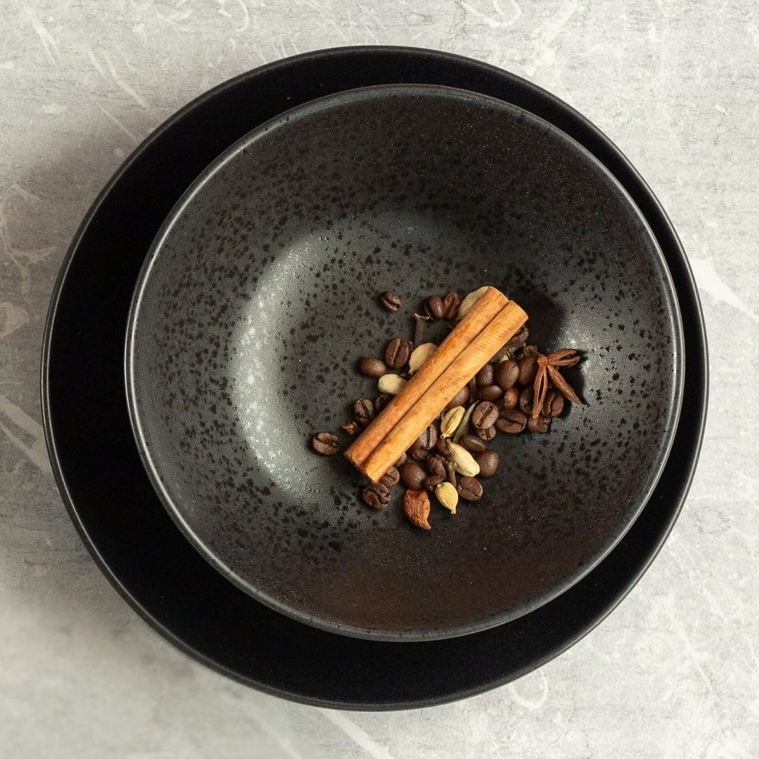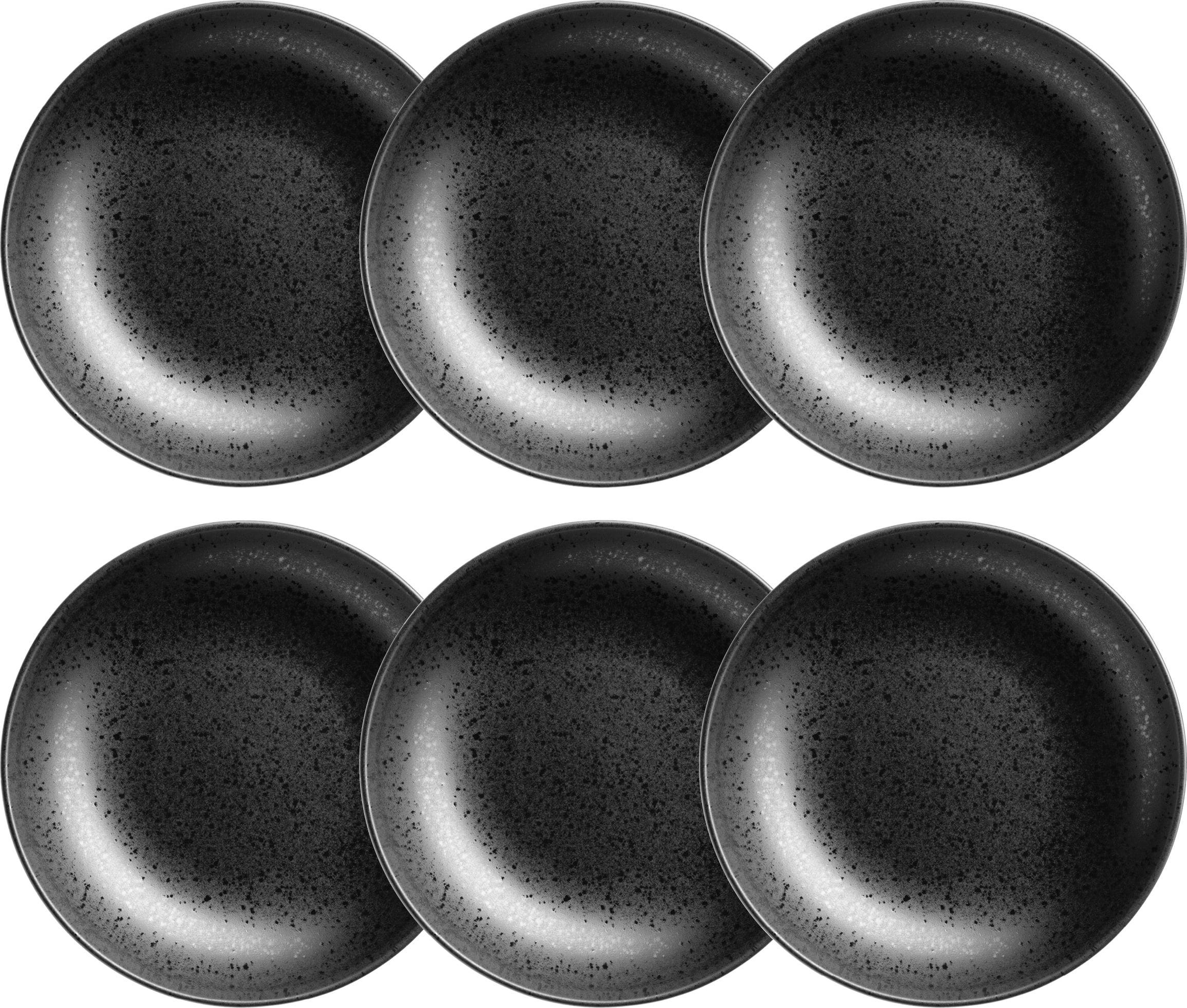 Transform your soup creations and creamy pasta dishes into true design highlights and enjoy the authentic flair of Portuguese craftsmanship right in your own home! The combination of the striking, matte-dark surface and the finely shimmering speckles gives these deep plates a modern depth that perfectly frames every dish.