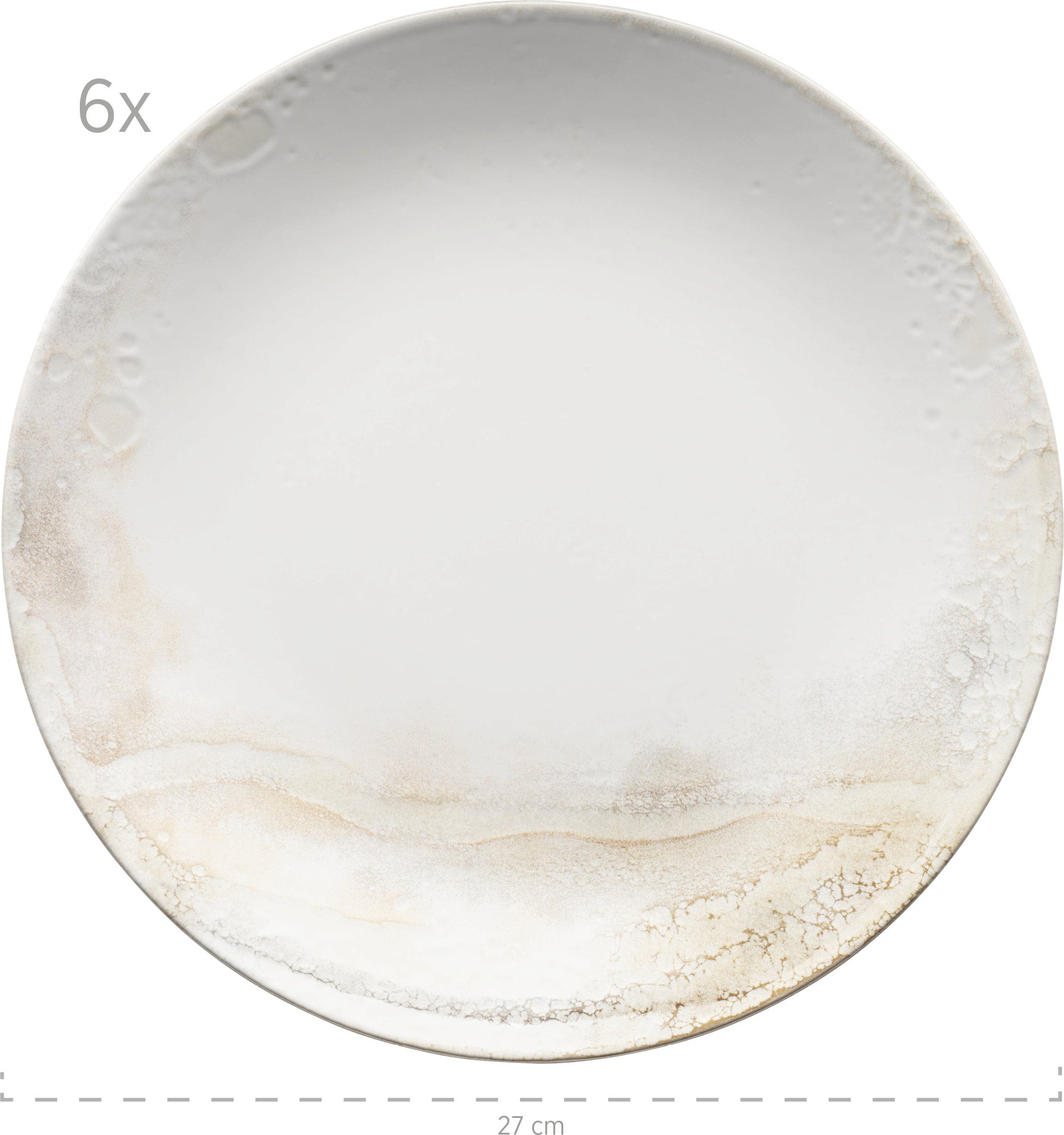 The set for 6 people offers you the perfect equipment for every meal with six dinner plates, six deep plates, and six dessert plates. Produced with great passion in Europe, this high-quality tableware is absolutely microwave-safe and permanently dishwasher-safe, allowing you to integrate natural aesthetics into your everyday life without much maintenance effort.