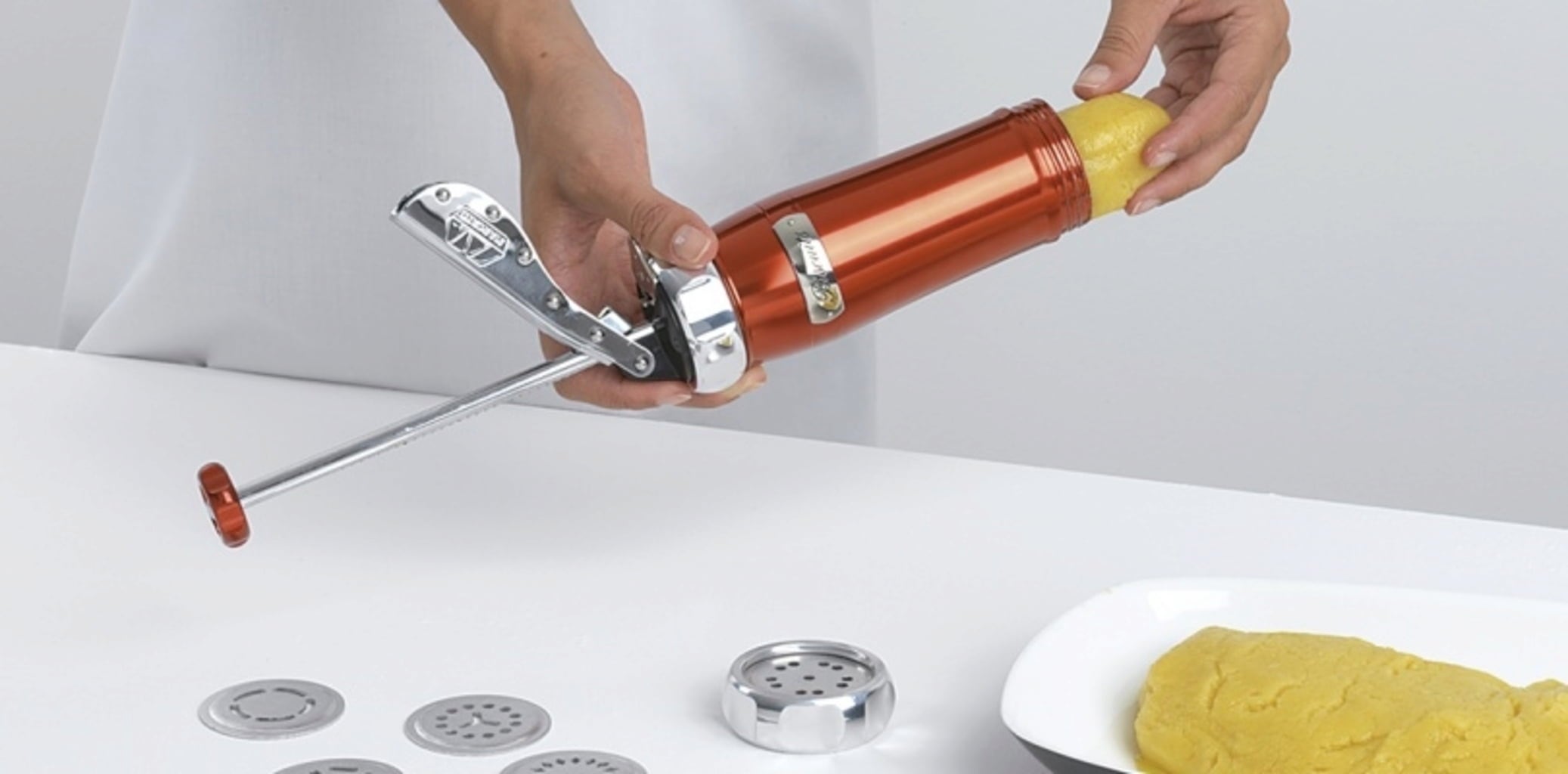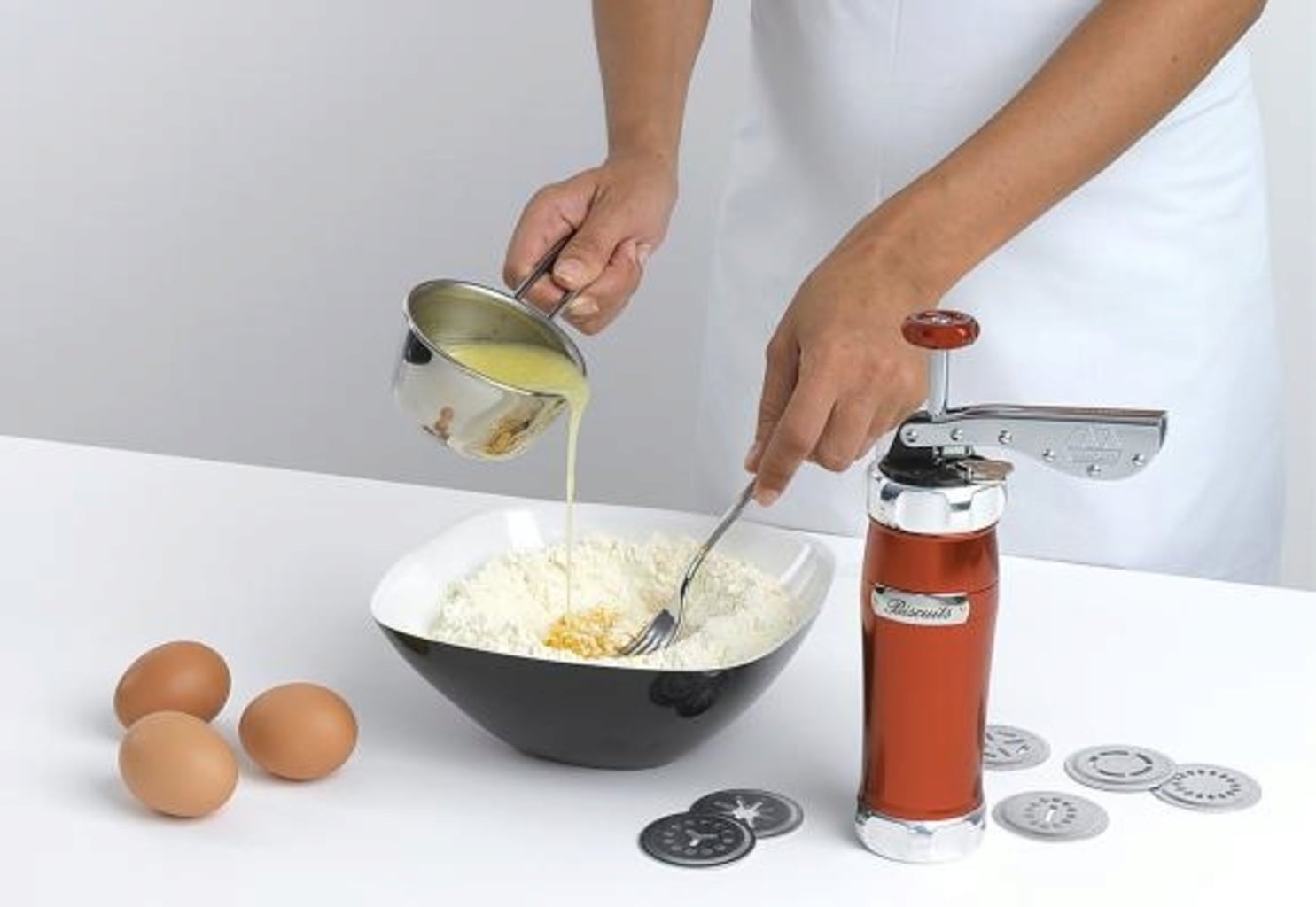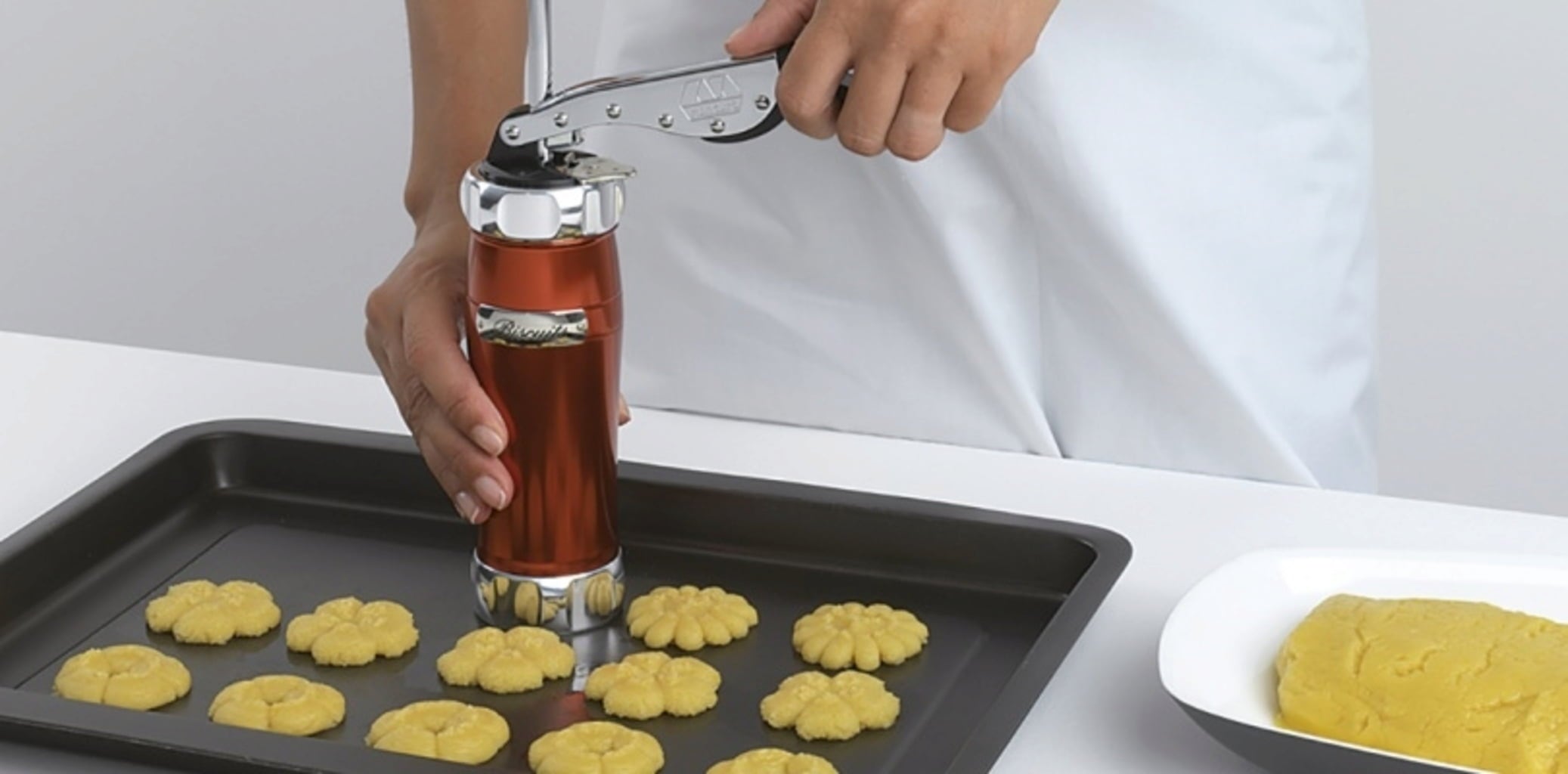 The small press is a fast way to make a lot of biscuits in different shapes. Enjoy homemade biscuits for any occasion!