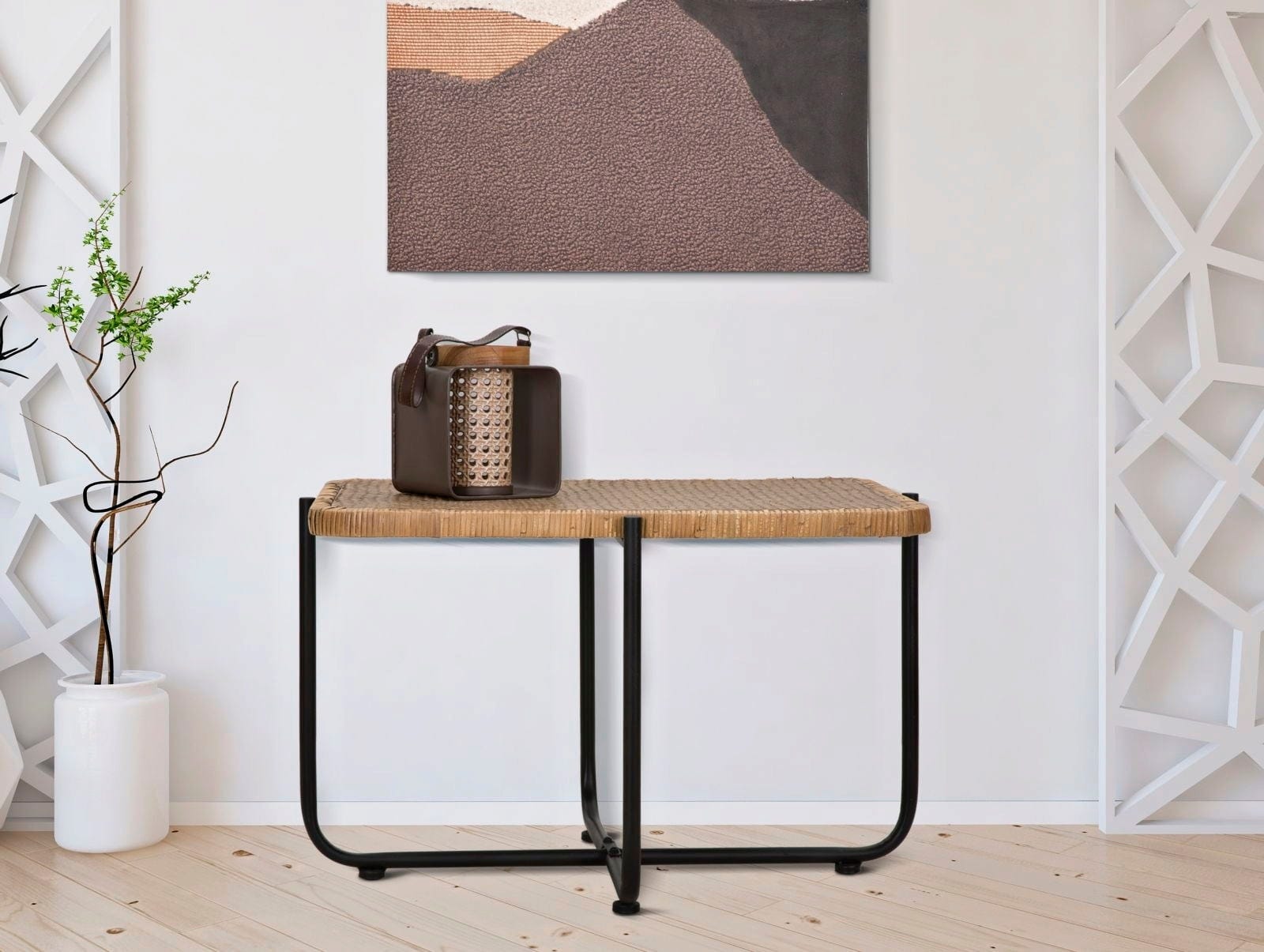 The tabletop made of high-quality, woven rattan gives the piece of furniture a warm, organic texture and is supported by a stable, matte black metal frame. Thanks to the clear lines and the minimalist cross frame at the base, Cebu fits seamlessly into any type of interior – whether modern, Scandinavian, or a cozy boho look.