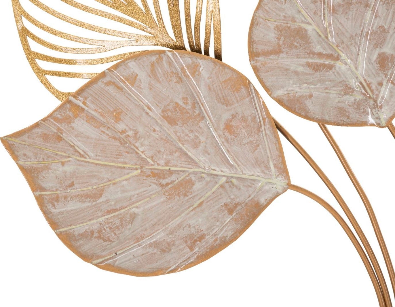 Give your home an elegant yet cozy touch with the Felix wall decoration by Mauro Ferretti. This artistic 3D metal panel impresses with its finely carved leaves, which shine in a harmonious interplay of gleaming gold and soft white. The combination of delicate lattice structures and solid leaf surfaces creates a fascinating depth and ensures an exciting play of light on your wall.