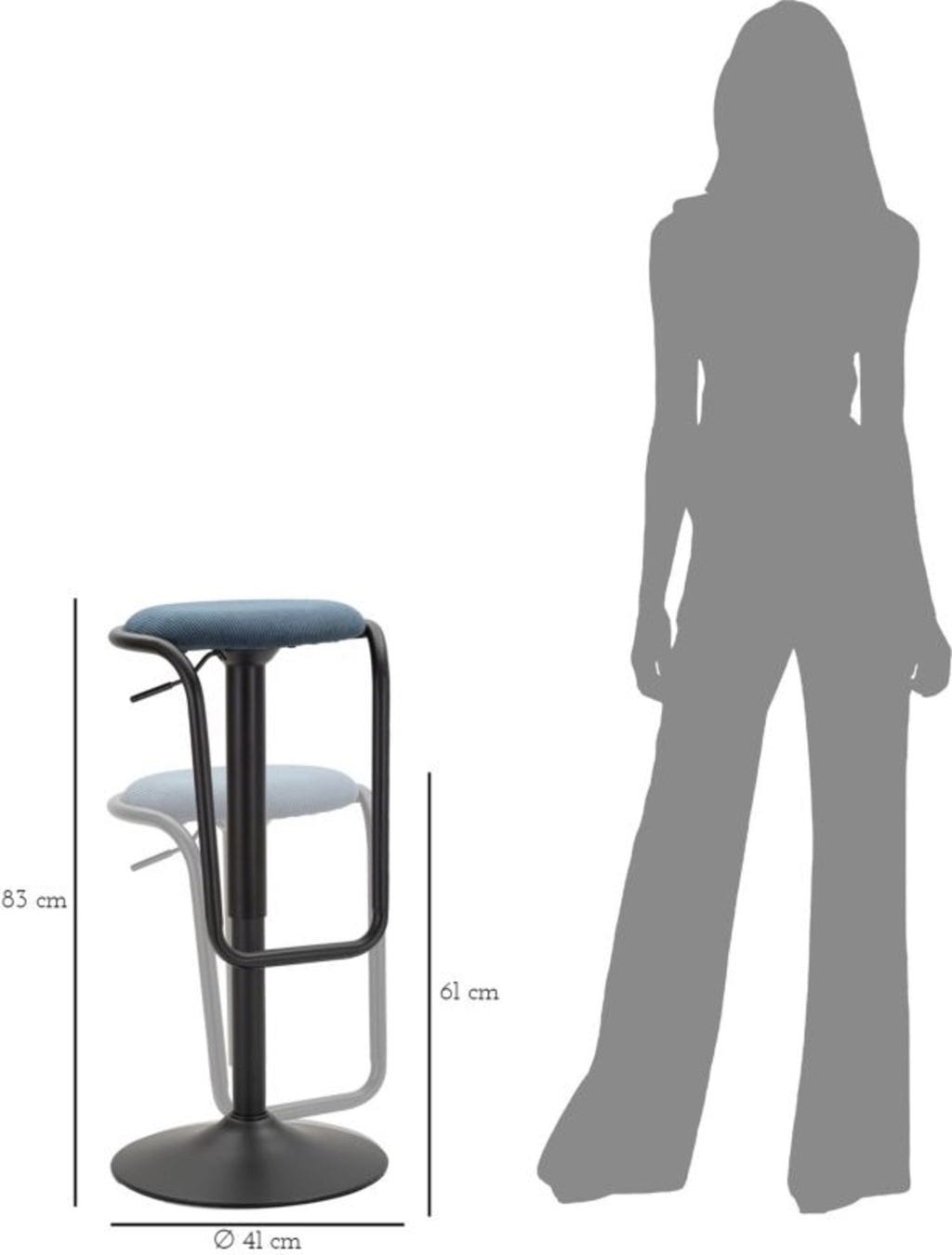 Supported by a robust, black metal frame, the stool offers maximum flexibility thanks to integrated height adjustment in the range of 61 to 83 cm and a practical footrest. Whether in the home kitchen or in a stylish lounge – this bar stool combines nostalgic flair with contemporary functionality!
