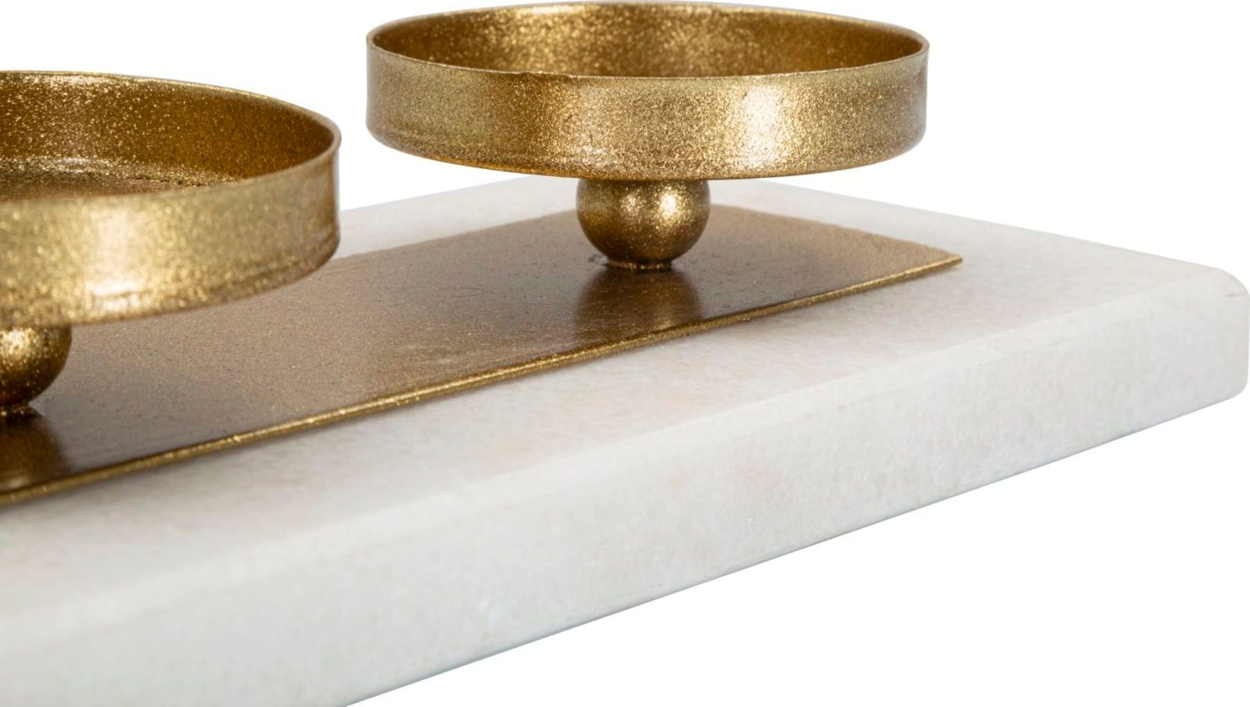 With the Marble Candle Holder by Mauro Ferretti, you bring a design object into your home that impresses with its simple perfection and high-quality choice of materials. Four minimalist holders in an elegant gold finish sit atop a solid, rectangular base made of radiant white marble, making your candles appear to float above the surface.