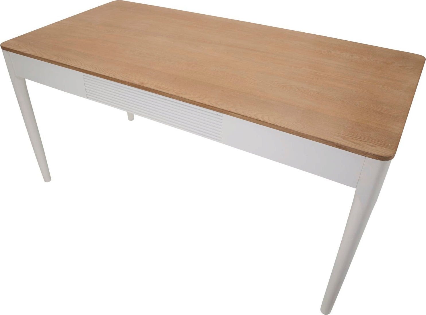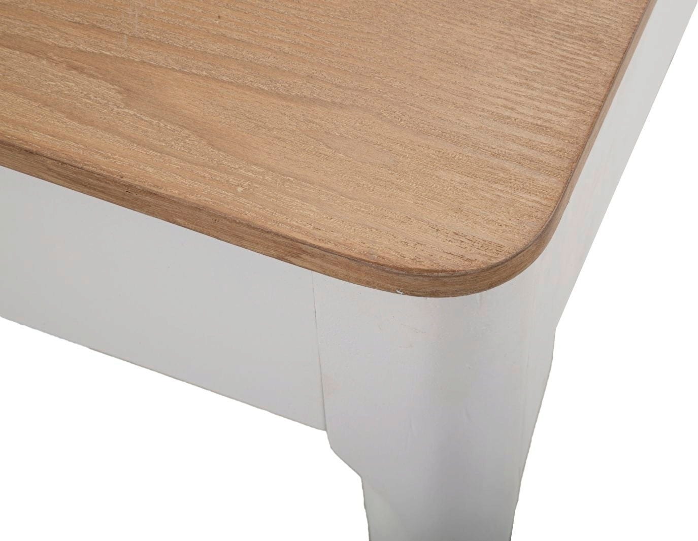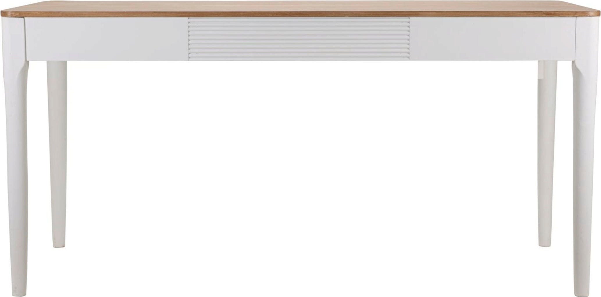 The design impresses with a tasteful contrast: the frame and the slender, tapered legs are finished in pure white, while the brown wooden top creates a warm, natural atmosphere. A subtle design detail is the fine grooved structure on the frame, which adds a sophisticated touch to the minimalist look. Whether for daily breakfast or cozy evenings with friends – the Matera is a versatile piece of furniture that perfectly embodies Scandinavian lightness!