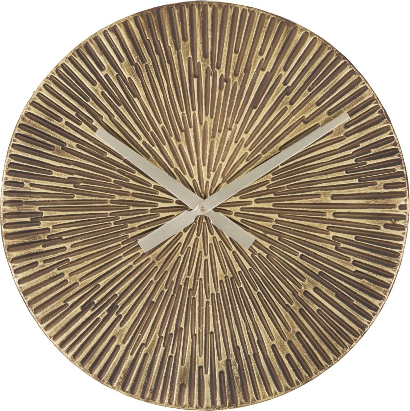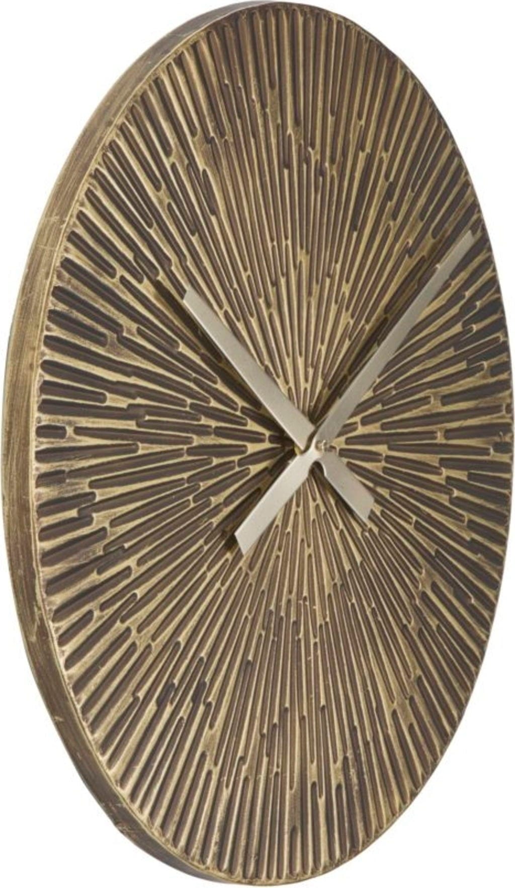 Make a sculptural statement on your wall with the Opis wall clock by Mauro Ferretti. This round designer clock made of bronze-coloured metal impresses with its extraordinary surface structure, reminiscent of stylised sunbeams.