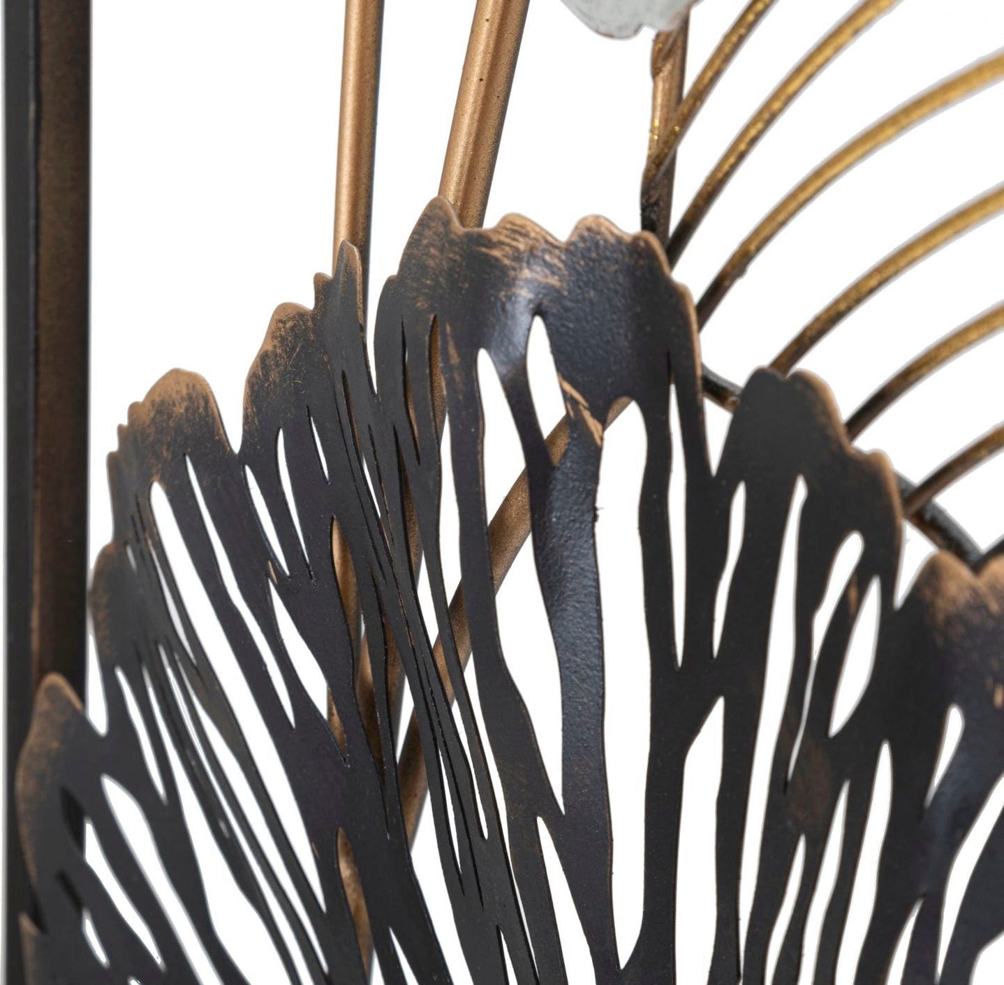 Give your walls an expressive personality with the Ory -A- Wall Decoration by Mauro Ferretti. This impressive metal panel perfectly implements the current trend of 3D wall design and brings a surprising, artistic atmosphere to your home. The design impresses with its fan-like ginkgo motifs, which shine in a harmonious interplay of elegant white, deep black, and luxurious gold.