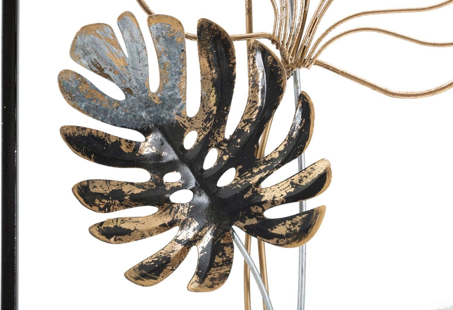 With the Palm Wall Decoration -B- by Mauro Ferretti you bring the popular botanical trend into your home in a particularly luxurious version. This impressive metal panel breaks away from classic flat wall design and instead relies on a fascinating 3D look that immediately brings depth and life to your rooms. You will be delighted by how the natural leaf designs – from the delicate palm to the iconic monstera leaf – harmonize with each other in an elegant mix of gold, soft white and dark accents.