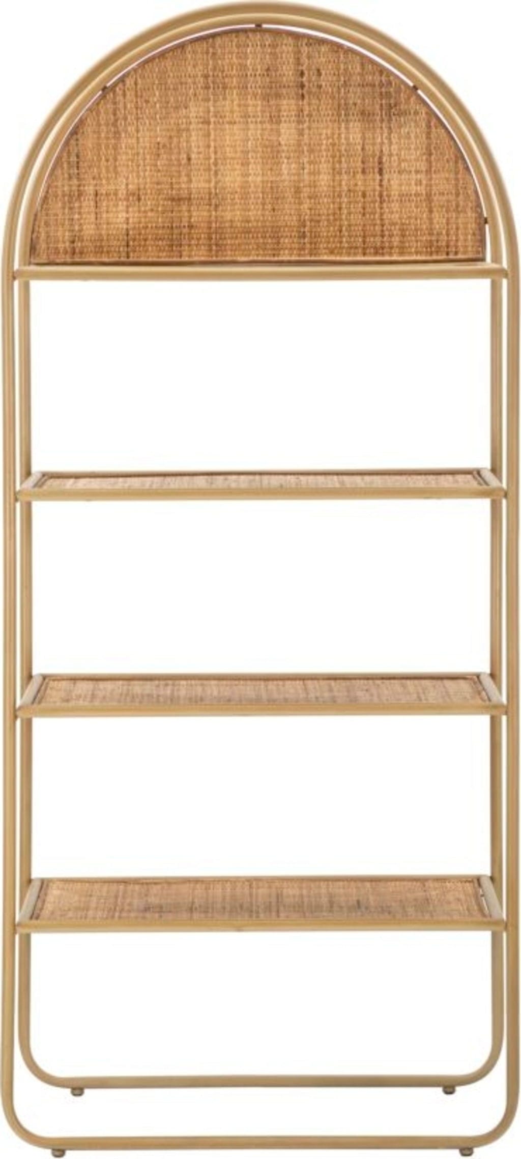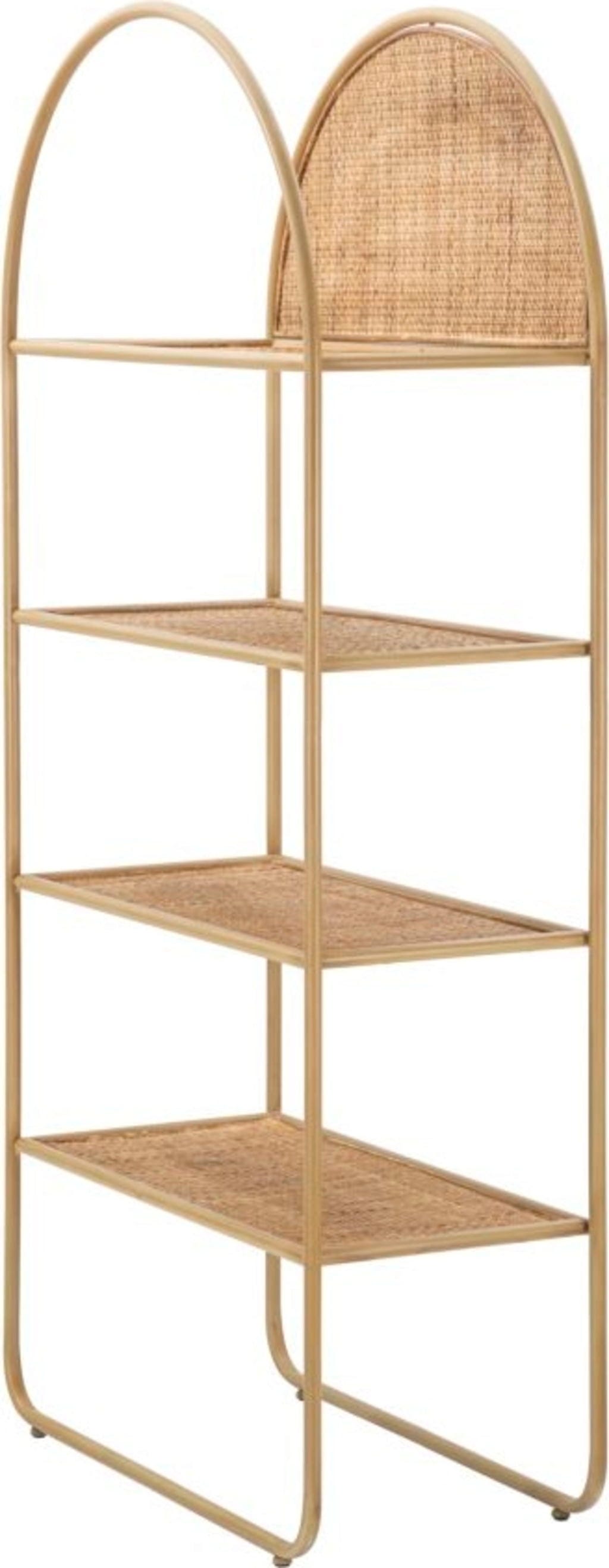 The shelf offers ample space for books, decorations, or plants on four generous shelves in a fine rattan look. A special eye-catcher is the semi-circular back panel in the top compartment, which stylishly emphasizes the woven theme. Thanks to its soft, simple lines and airy construction, it is the perfect addition to any type of furniture and gives every room an inviting, cozy atmosphere.