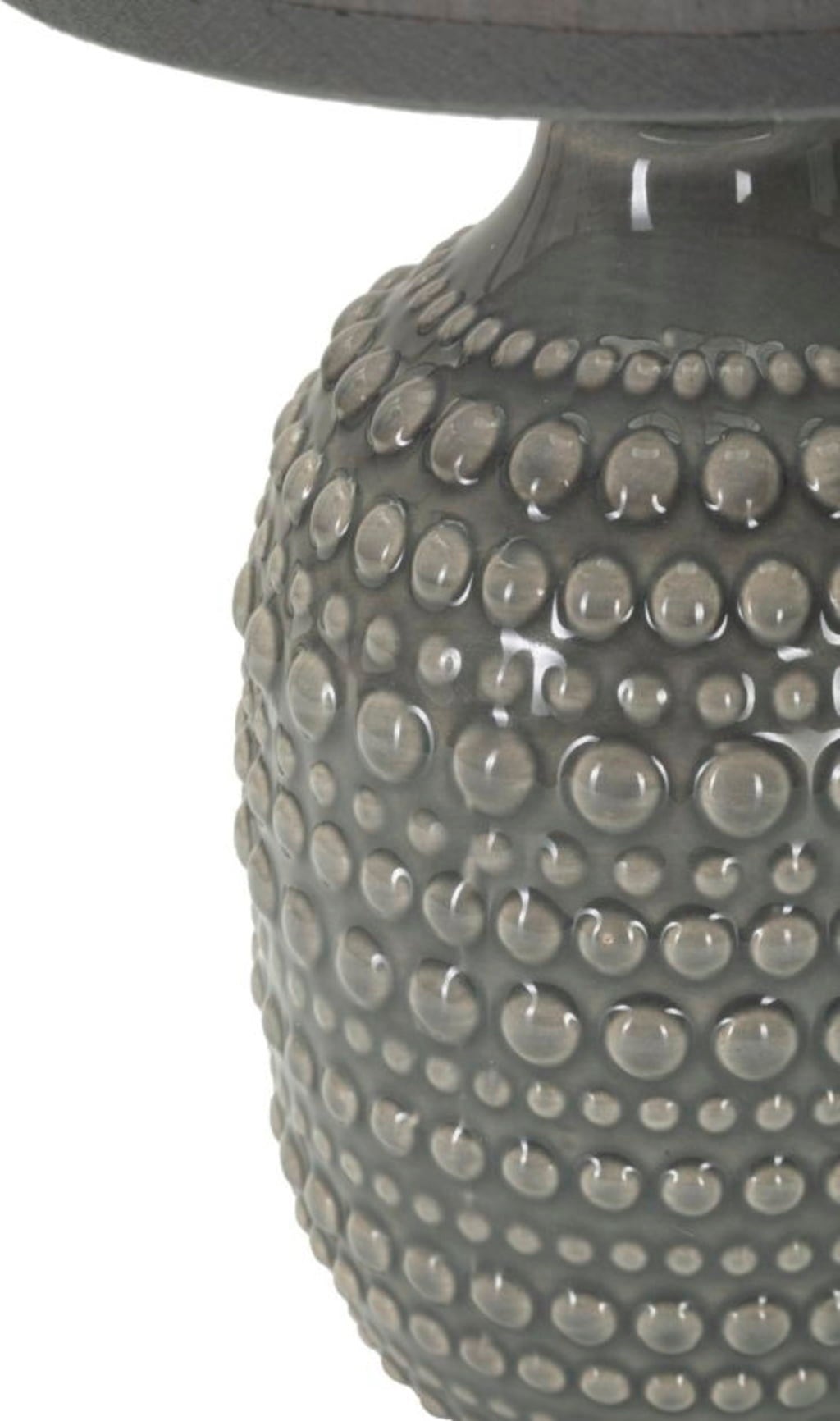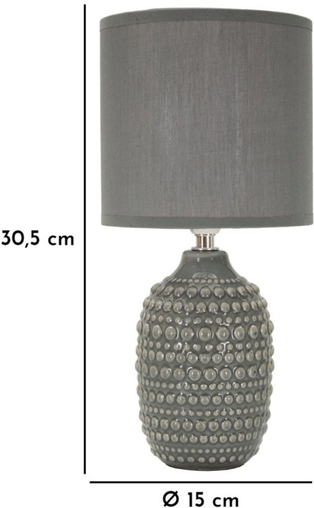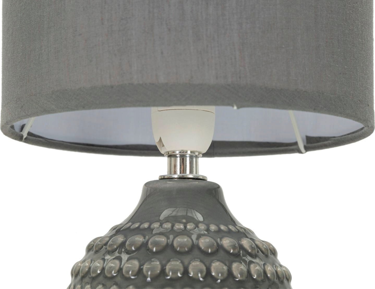 Effortlessly add a touch of modern elegance to your bedroom with this stylish bedside lamp. The lamp base in sophisticated grey stands out with its unique, tactile relief decoration of raised dots - a modern, tactile design that instantly adds depth to your interior.