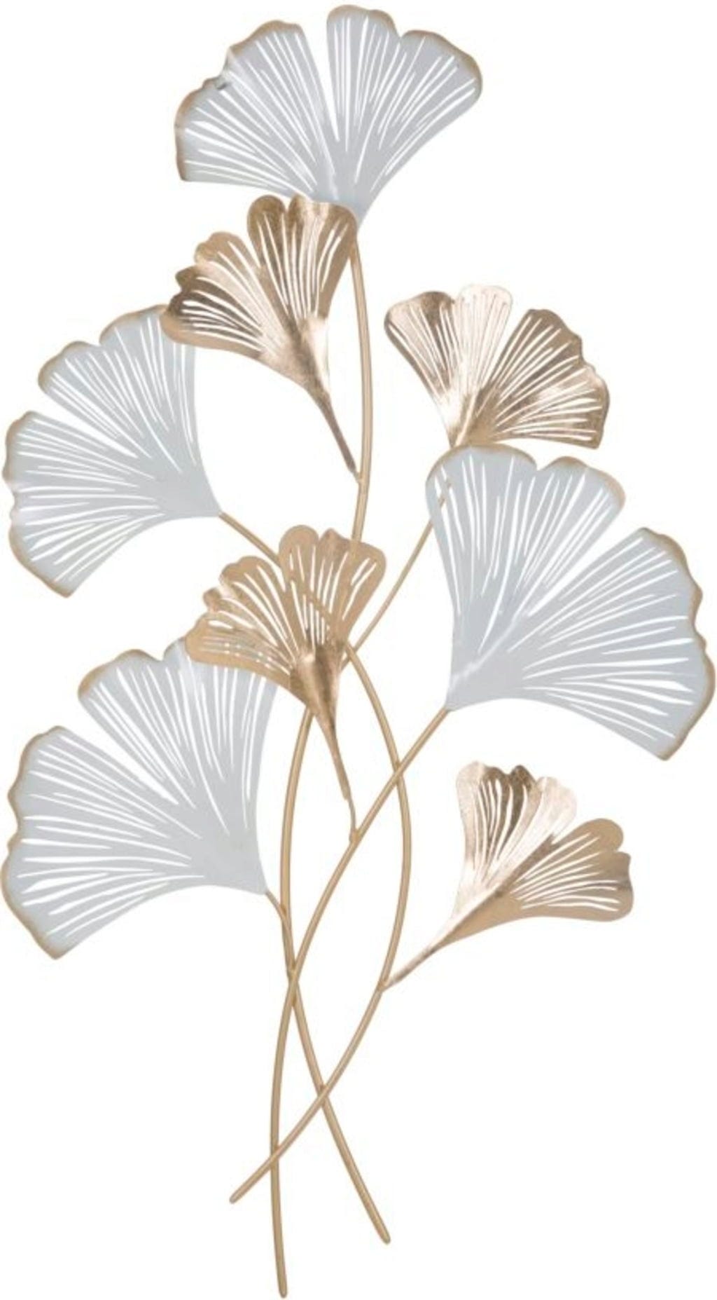 Give your home a very personal and exotic touch with the Rixy -A- Wall Decoration by Mauro Ferretti. This decorative 3D metal plate impresses with a natural design reminiscent of ginkgo leaves gently swaying in the wind. The harmonious interplay of pure white and luxurious gold accents immediately gives every room a bright, friendly, and at the same time noble atmosphere.