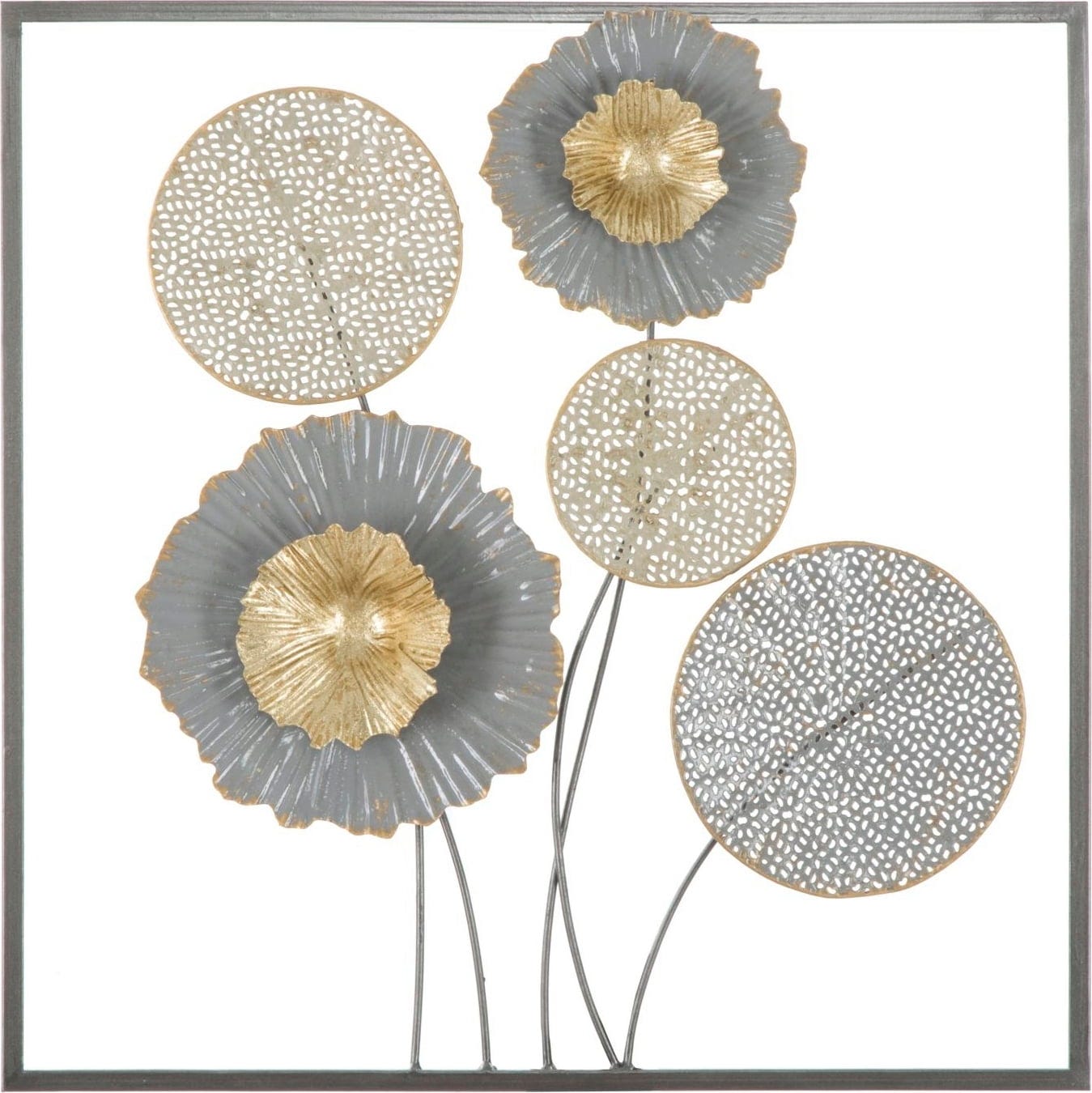 Make a stylish statement with the Sqity Wall Decoration by Mauro Ferretti. This square metal panel is more than just an accessory – it is a fusion of nature and art that perfectly embodies the current trend of 3D wall design. Within a simple, anthracite-coloured frame, a floral composition of artistically structured blossoms and circular leaf elements unfolds.