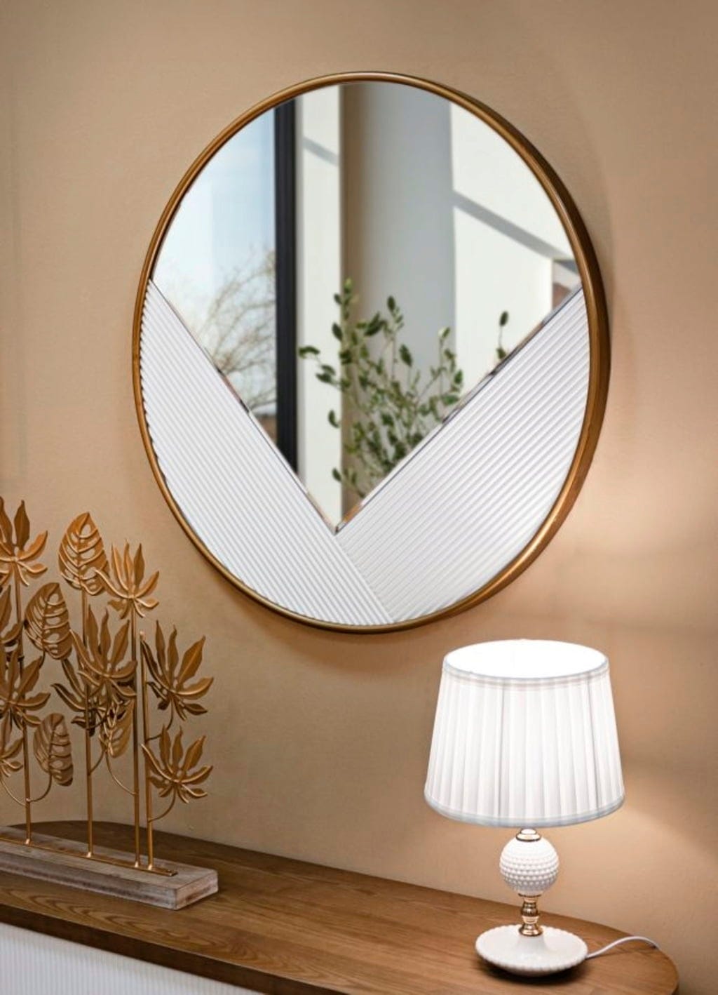With the Tolosa Wall Mirror by Mauro Ferretti, you make a clear design statement on your walls. This round mirror impresses with its extraordinary two-part design: while the upper half offers classic clarity, the lower third surprises with an elegant wooden relief decor in radiant white. The fine linear structure of the relief gives the mirror a fascinating depth and makes it a true object of art.