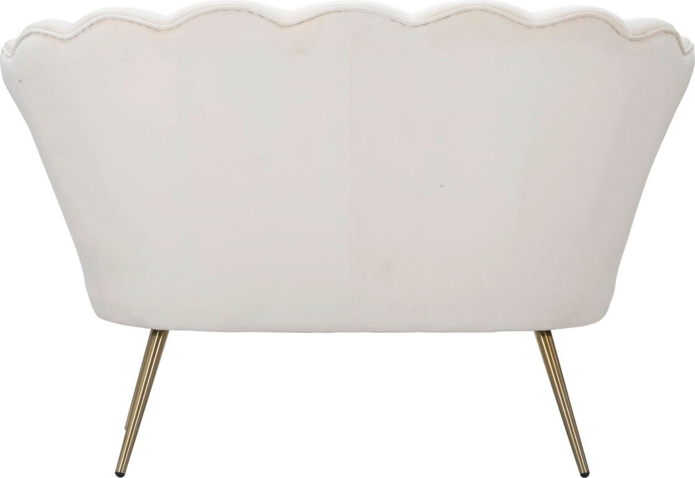 Make a stylish statement in your living room or bedroom with this unusual two-seater sofa. The design impresses with a backrest with a curved shape reminiscent of delicate petals. The cream-coloured velvet cover gives the piece of furniture a sophisticated feel and a soft look.