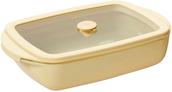 Pebbly Rectangular Glass Casserole Dish with Glass Silicone Lid, 0.8 L, Vanilla