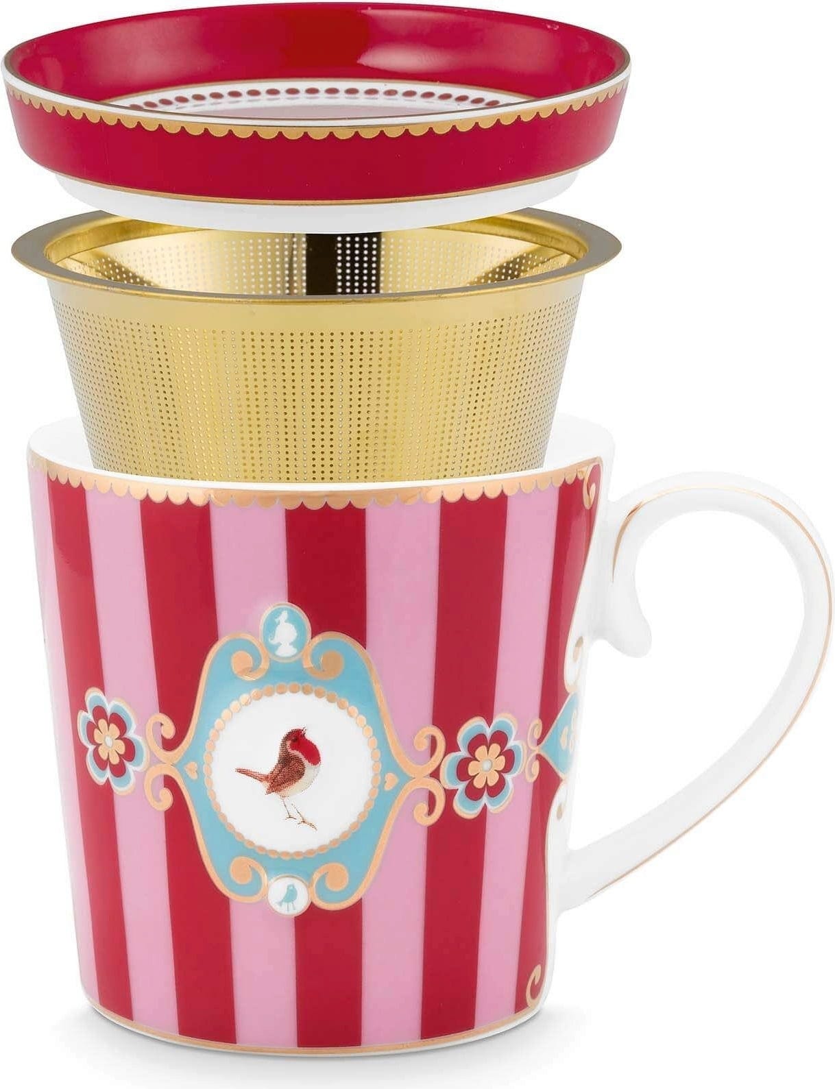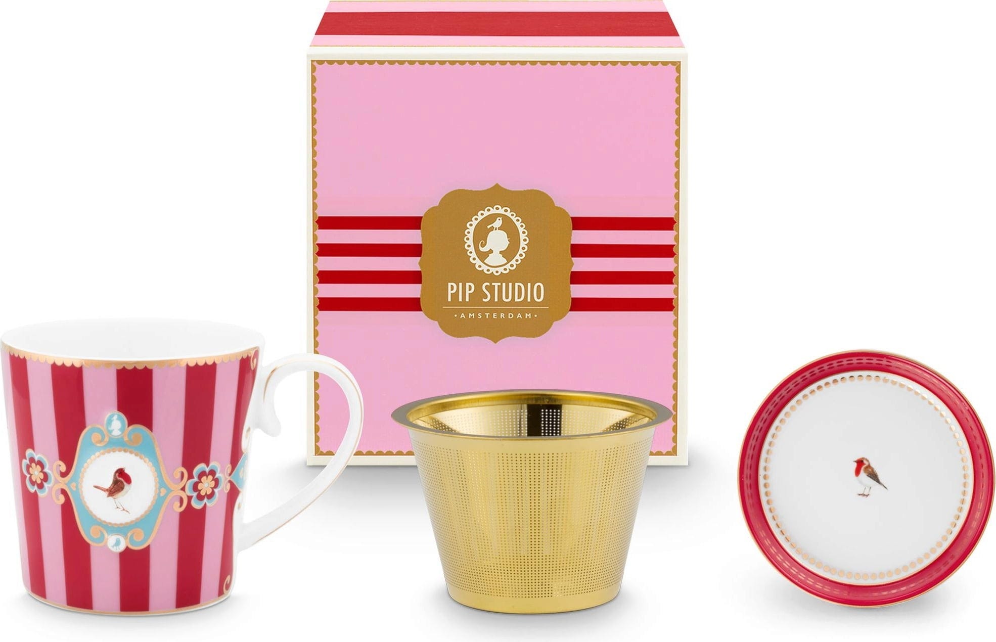 Pip Studio Love Birds Tea for One, Red striped