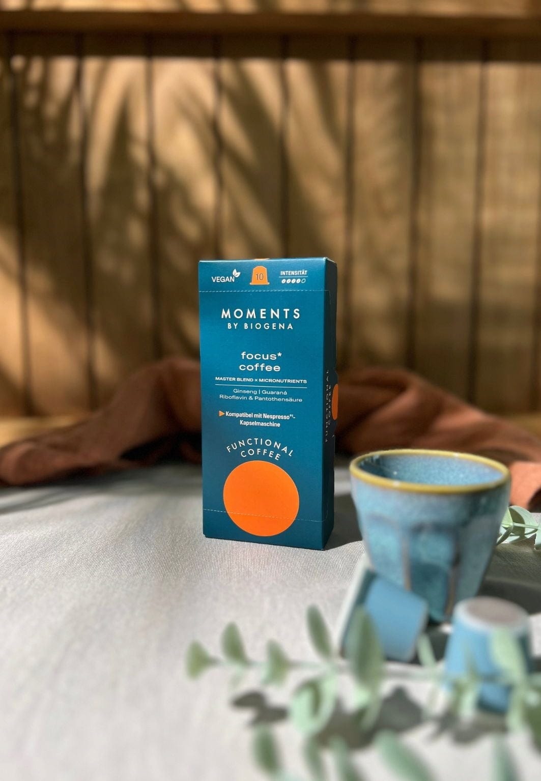 The focus* coffee with ginseng, guarana, riboflavin and pantothenic acid brings fresh impetus to daily coffee enjoyment. The special flavour combines a sophisticated recipe with a user-friendly application.