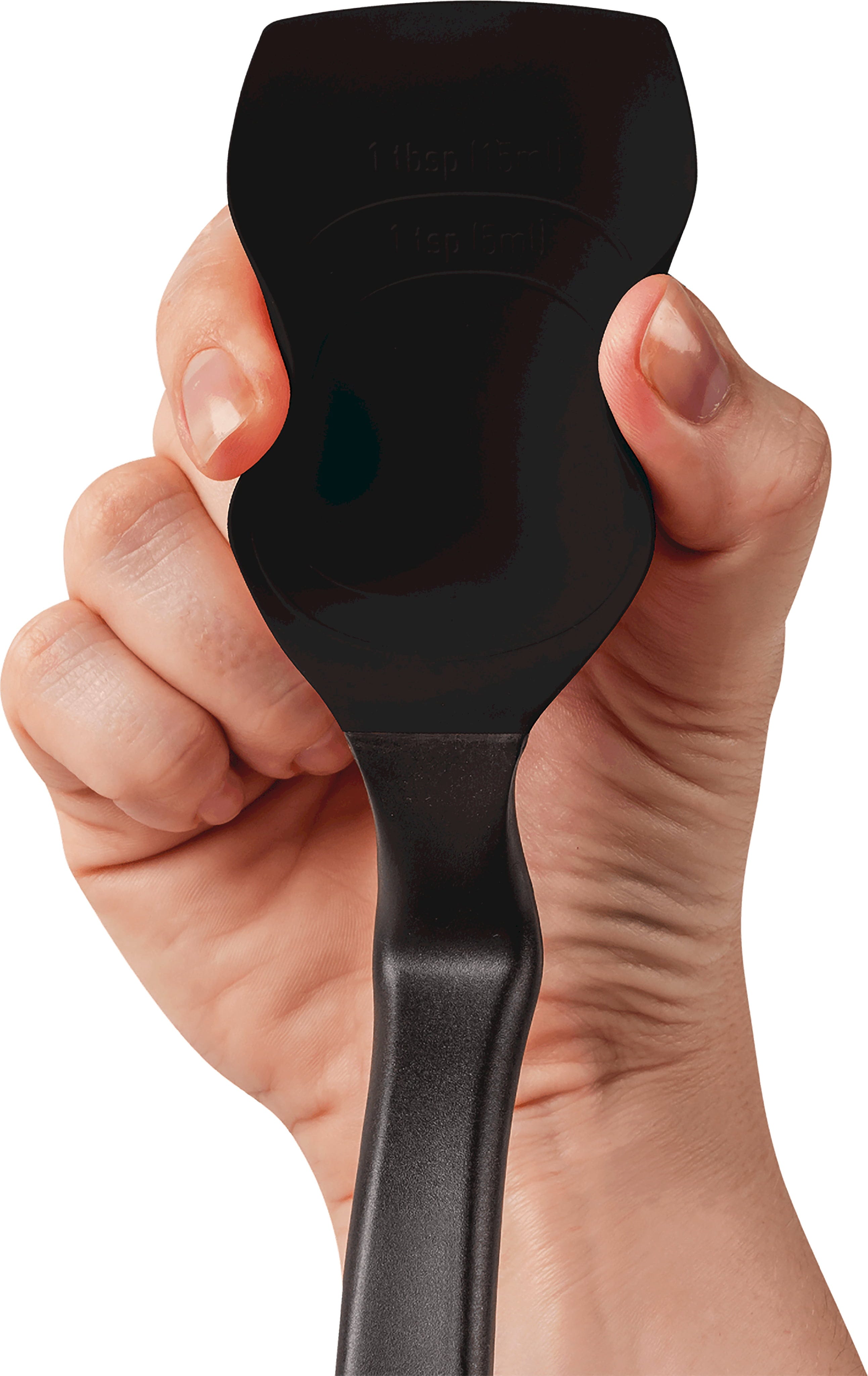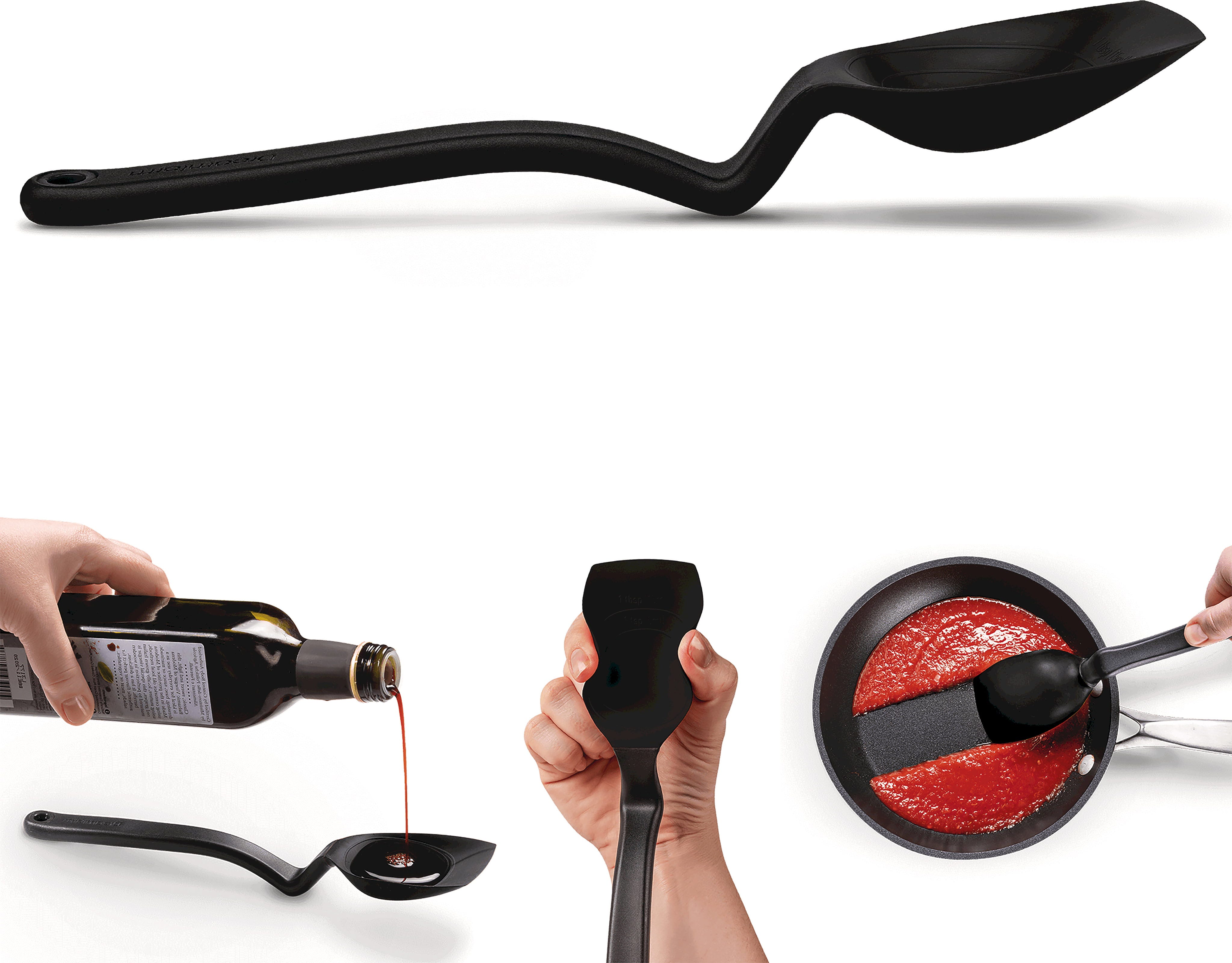 Featuring a clever "sit up" handle, the spoon head remains elevated above your worktop, allowing you to set it down without leaving a mess. For added convenience, you can also hook it directly onto the rim of your pan. With integrated measurements for a precise 15 ml (one tablespoon) and heat resistance up to 260°C, the Supoon is a versatile essential for every cook.