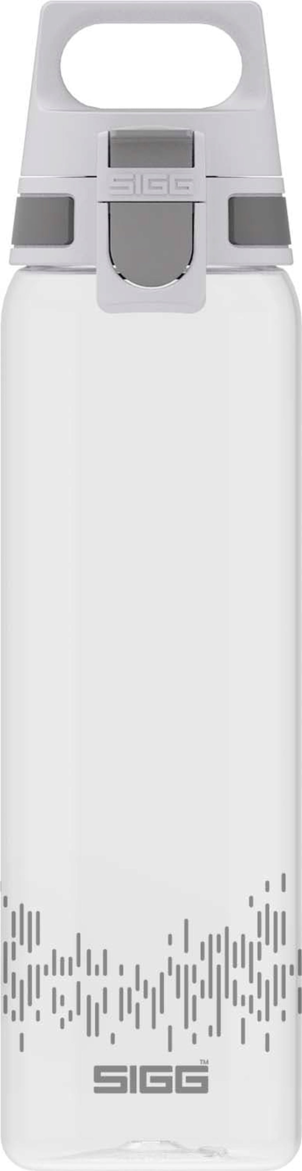 Whether for sports, at the office, or while travelling, the robust Total Clear Drinking Bottle from SIGG is a true all-rounder that impresses with its scratch-resistant transparency and extreme durability. Thanks to the innovative ONE top, you always have one hand free, as carrying, opening, and closing work intuitively with just one click.