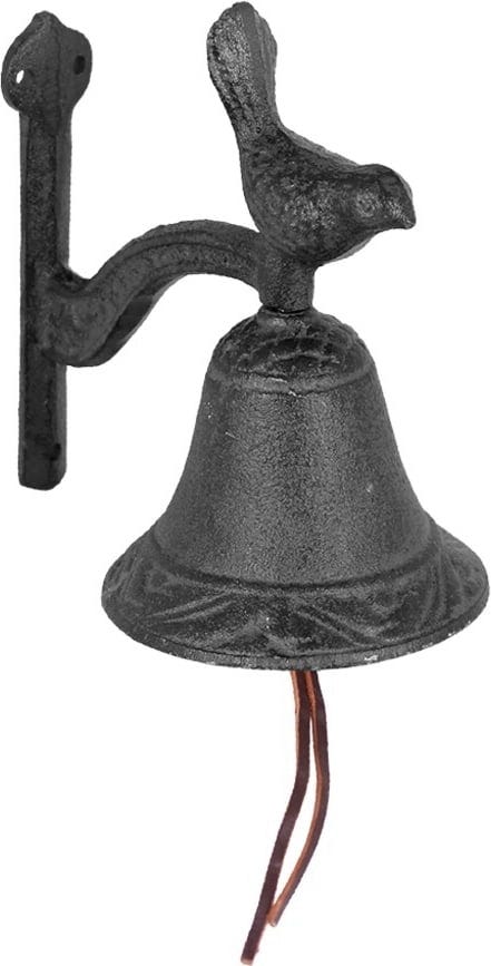 This rustic doorbell features a small bird and is made of durable cast iron. It can easily be mounted on a wall. The sound of the bright bell ringing is the perfect way to welcome guests to your home.