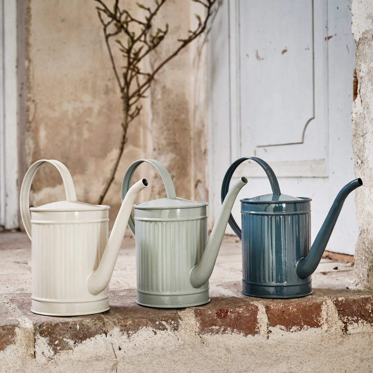 This tasteful watering can is made of painted metal with elegant striped pattern. The large handle makes it easy to water houseplants or plants on your balcony. It also makes a stylish home decoration.