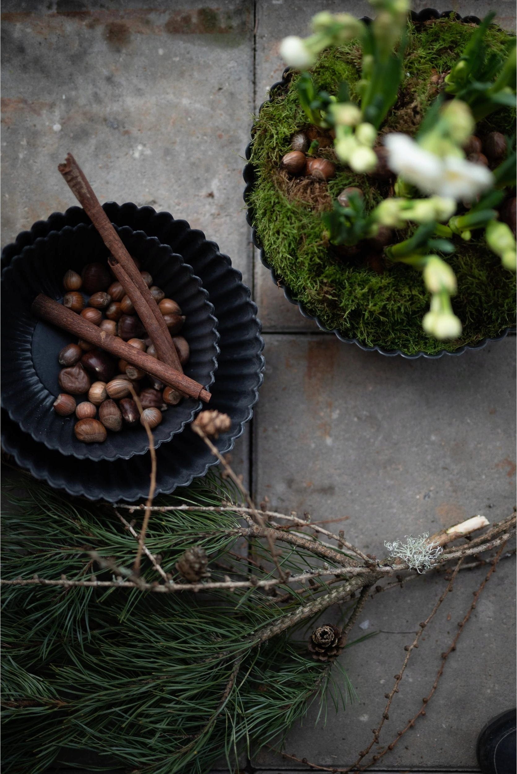 This planter, made of robust plastic, is perfect for stylish autumn plant arrangements. The high-quality accessory exudes a dark, understated elegance.